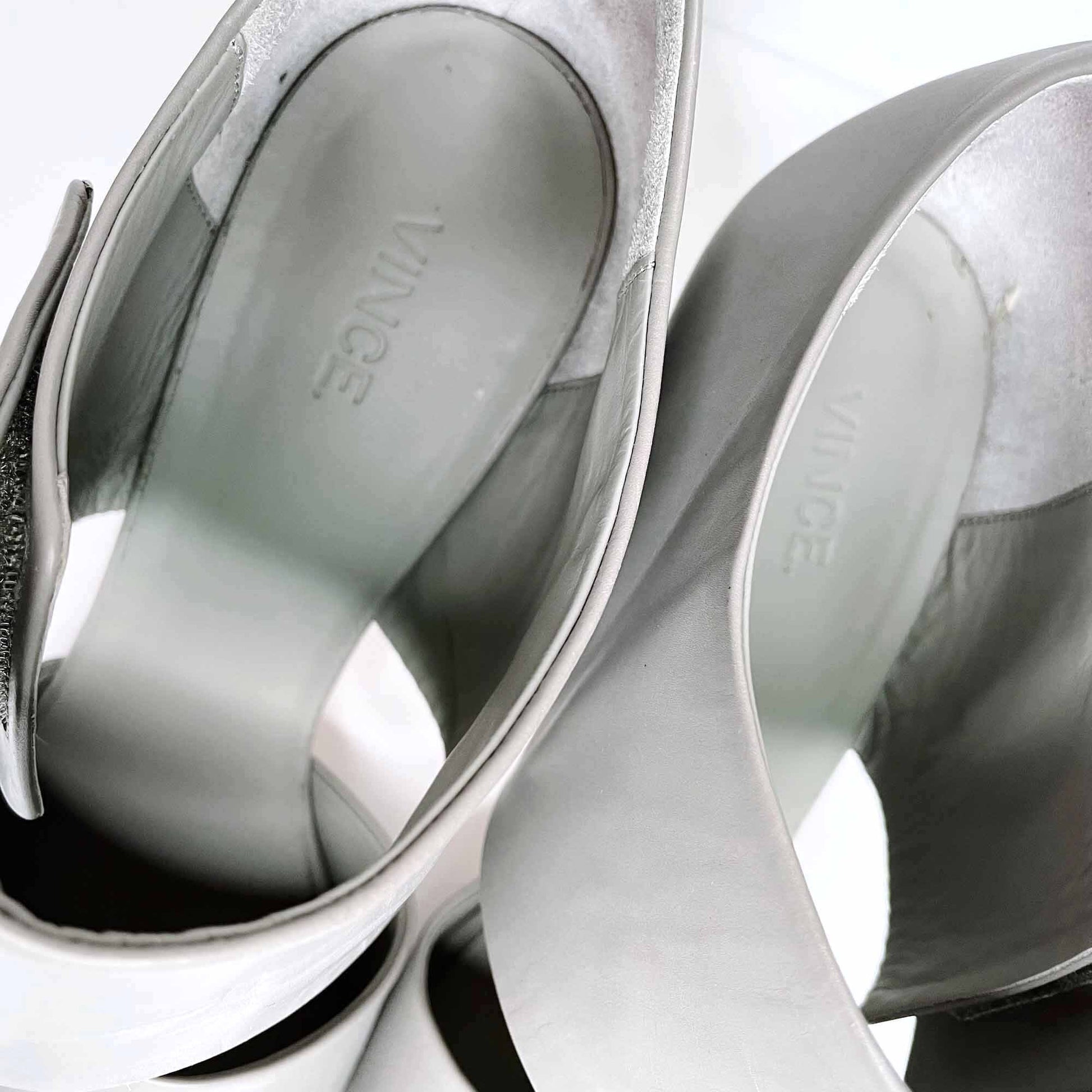 Item Description: Enhance your elegant style with the cosmopolitan beauty of the Vince™ Capri heel. Italian leather upper. Wide ankle strap with hook-and-loop closure. 100% leather