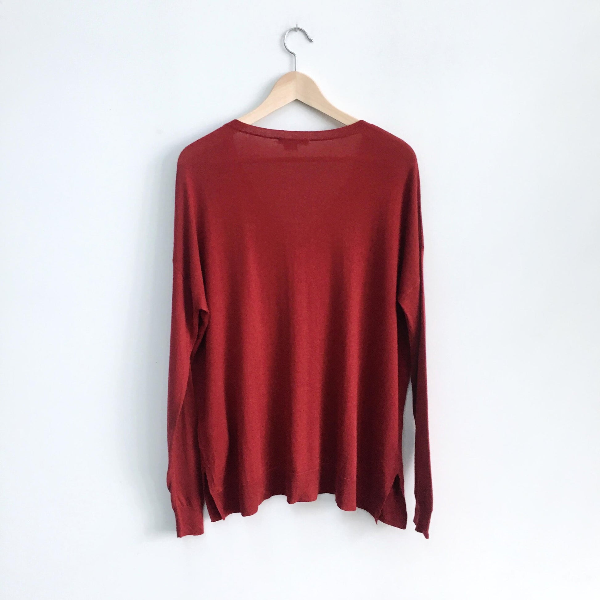 Item Description: This classic v-neck sweater from Vince is boosted with a premium silk and cashmere blend, dropped shoulders and side slits. 85% silk 15% cashmere