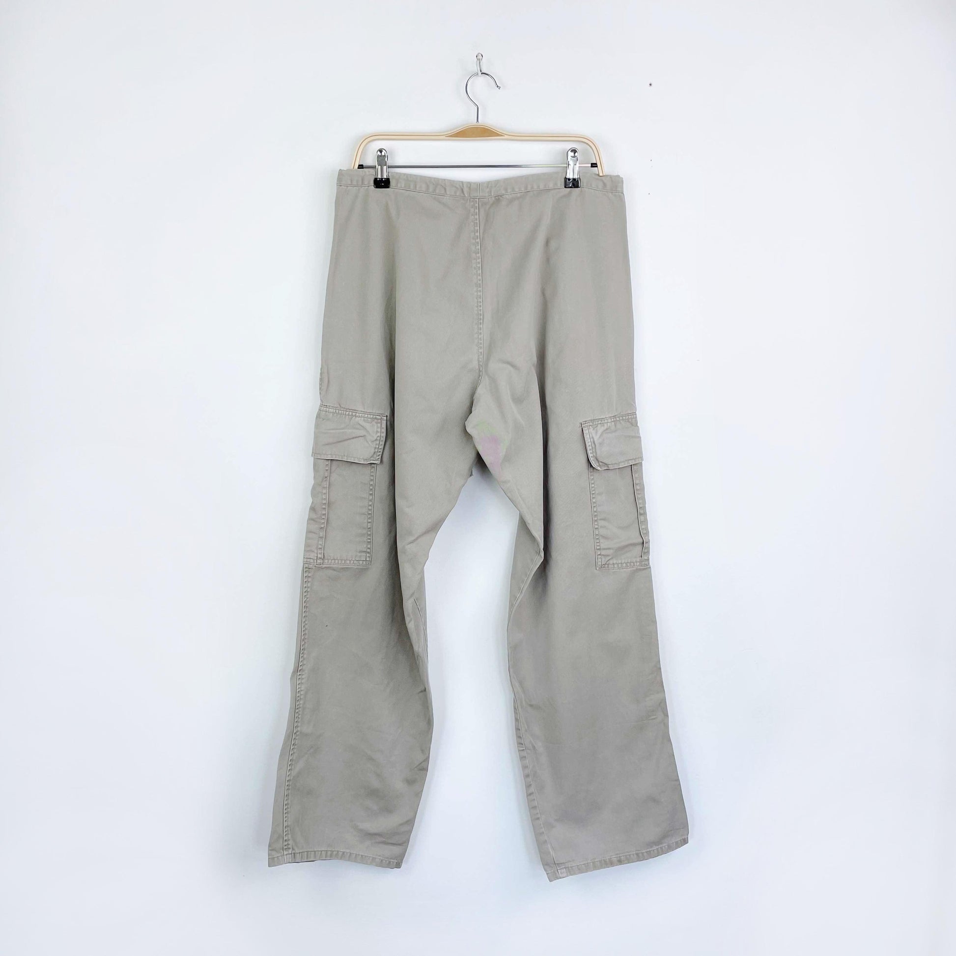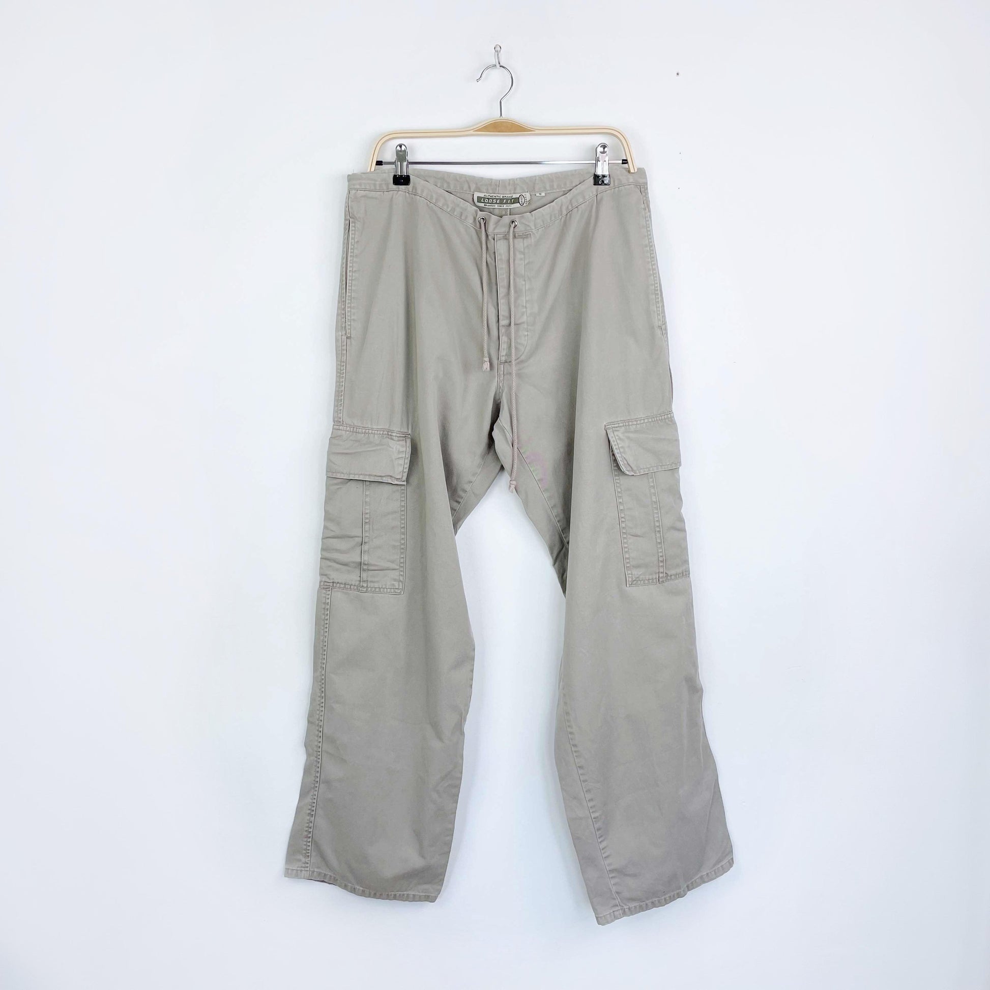 Item description: If you're looking for true Y2K style, these were the 'it' pant at the end of the 90s, beginning of the 2000's. (That and the silver ultra wide leg skater jeans). These loose-fit boyfriend khaki's from Brody (bootlegger) have a drawstring waist and mid-rise that sits off your hips for a baggy look. 100% cotton