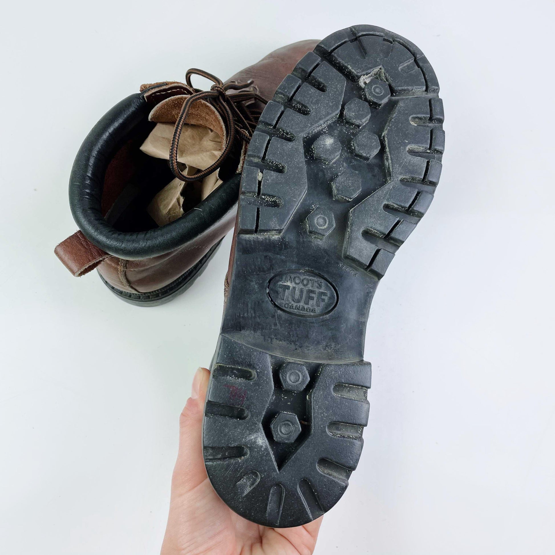vintage 00's roots tuff leather hiking boots - size 9