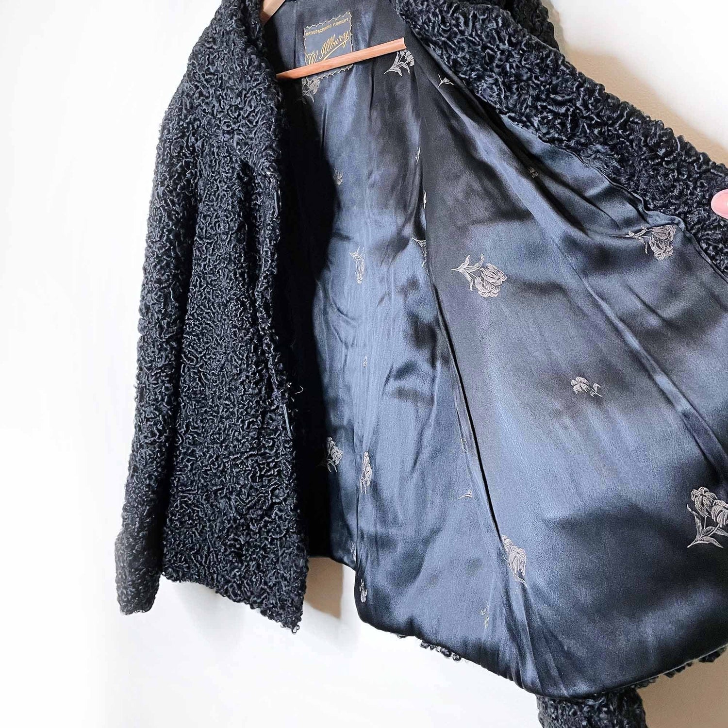 vintage 50's w. illbury black persian sheepskin jacket - size medium