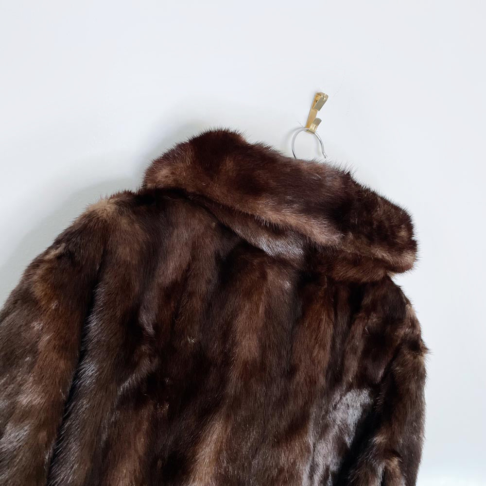 Kindly note that the fur coats in this collection are vintage and are of delicate nature. Skin naturally dries out and is easier to tear when it gets older. Please handle with care - especially when you are putting it on and bending your elbows. All fur in this collection is final sale.