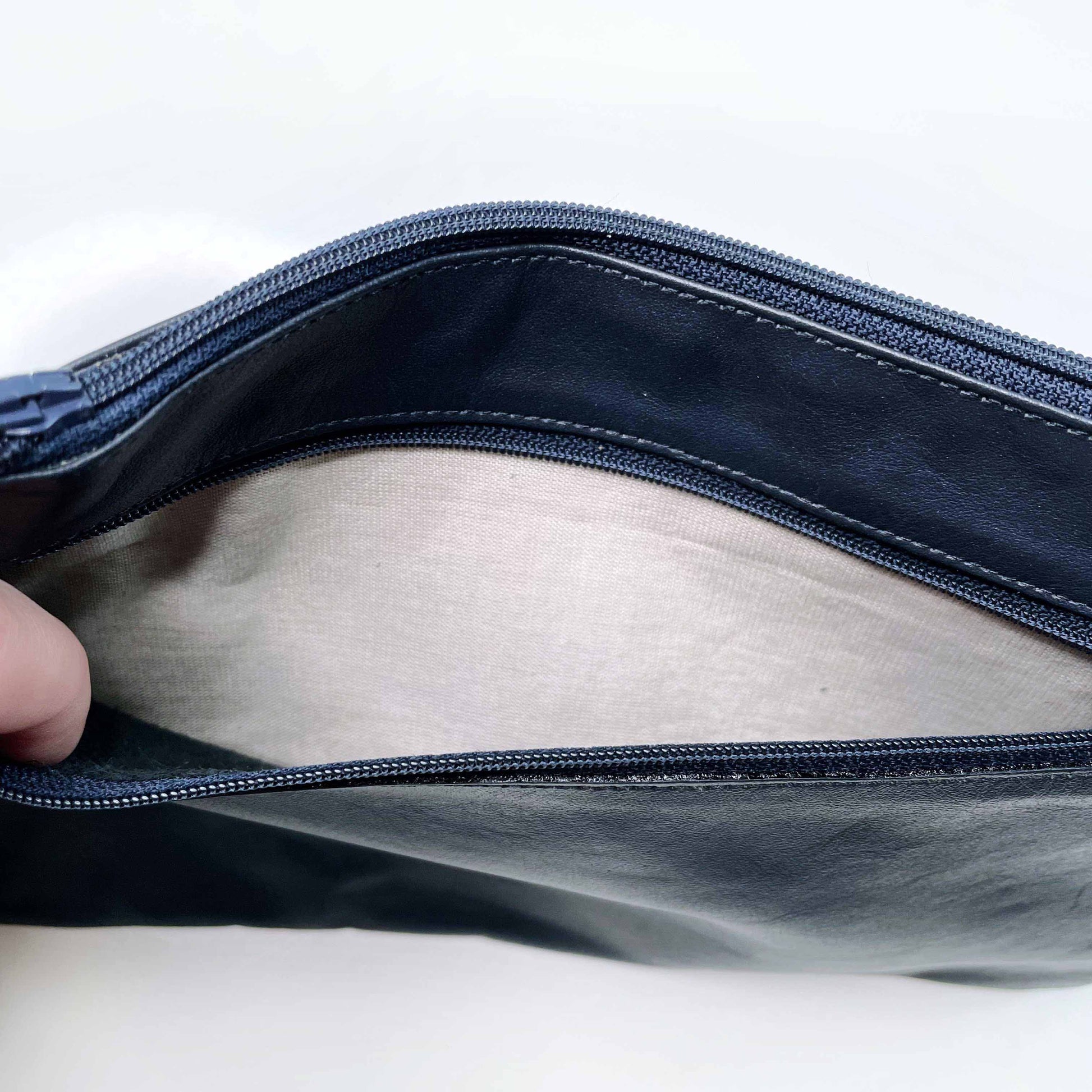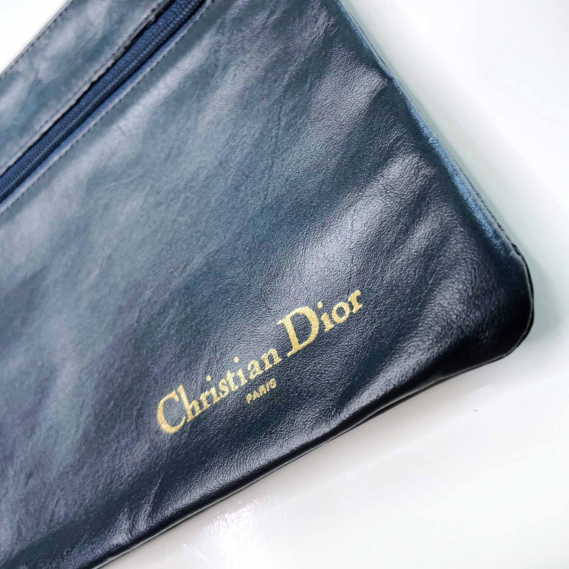 Item Description: A timeless bag, this small leather makeup bag from Christian Dior features multiple zipper compartments and gold hardware for an easy hold, or securing inside your bag. 100% leather