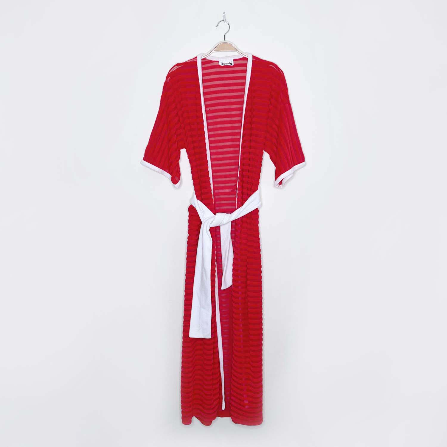vintage 60s liberty mrs. claus fleece mesh belted robe - one size