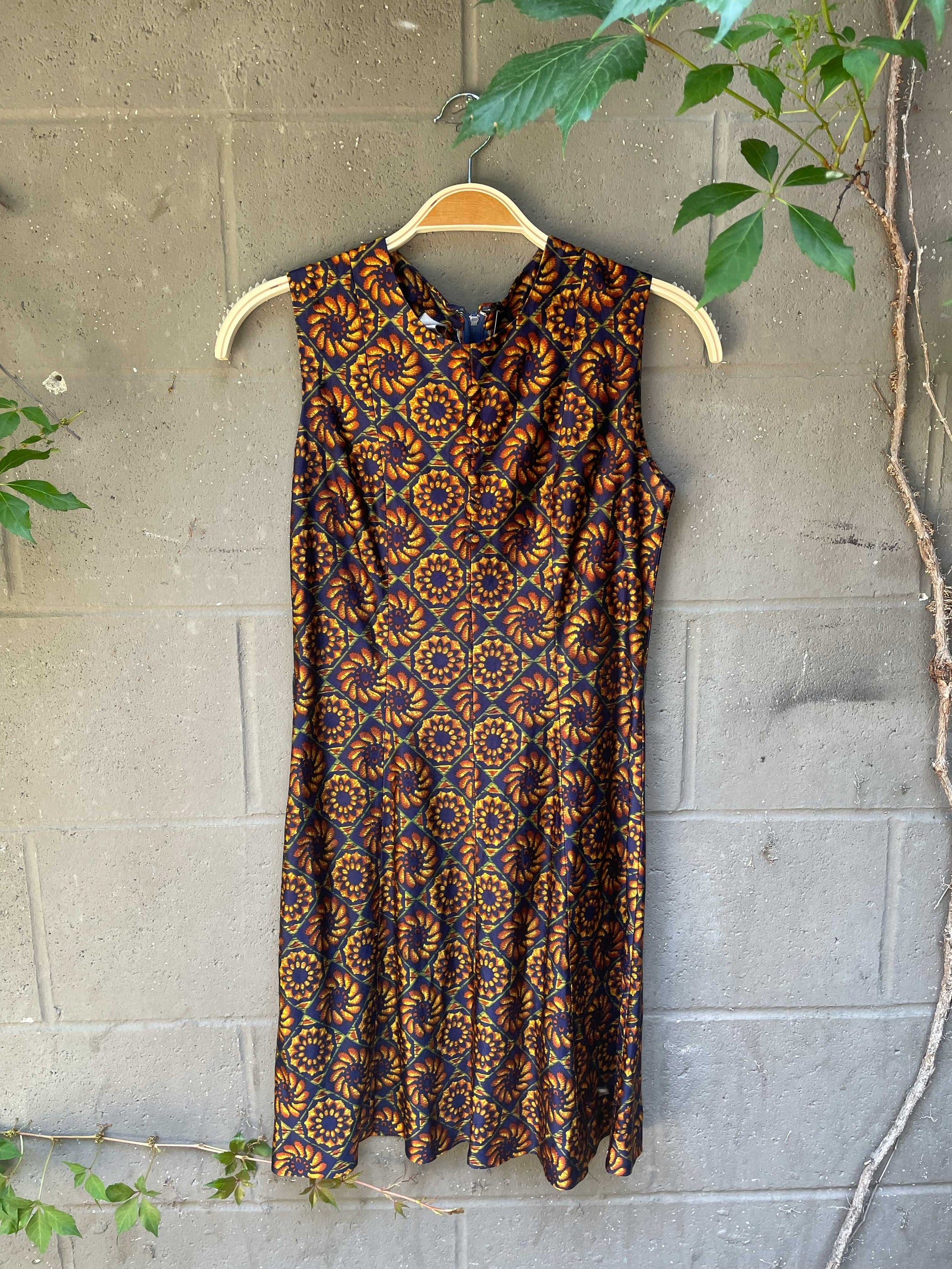 vintage 60s sun print satin mini dress