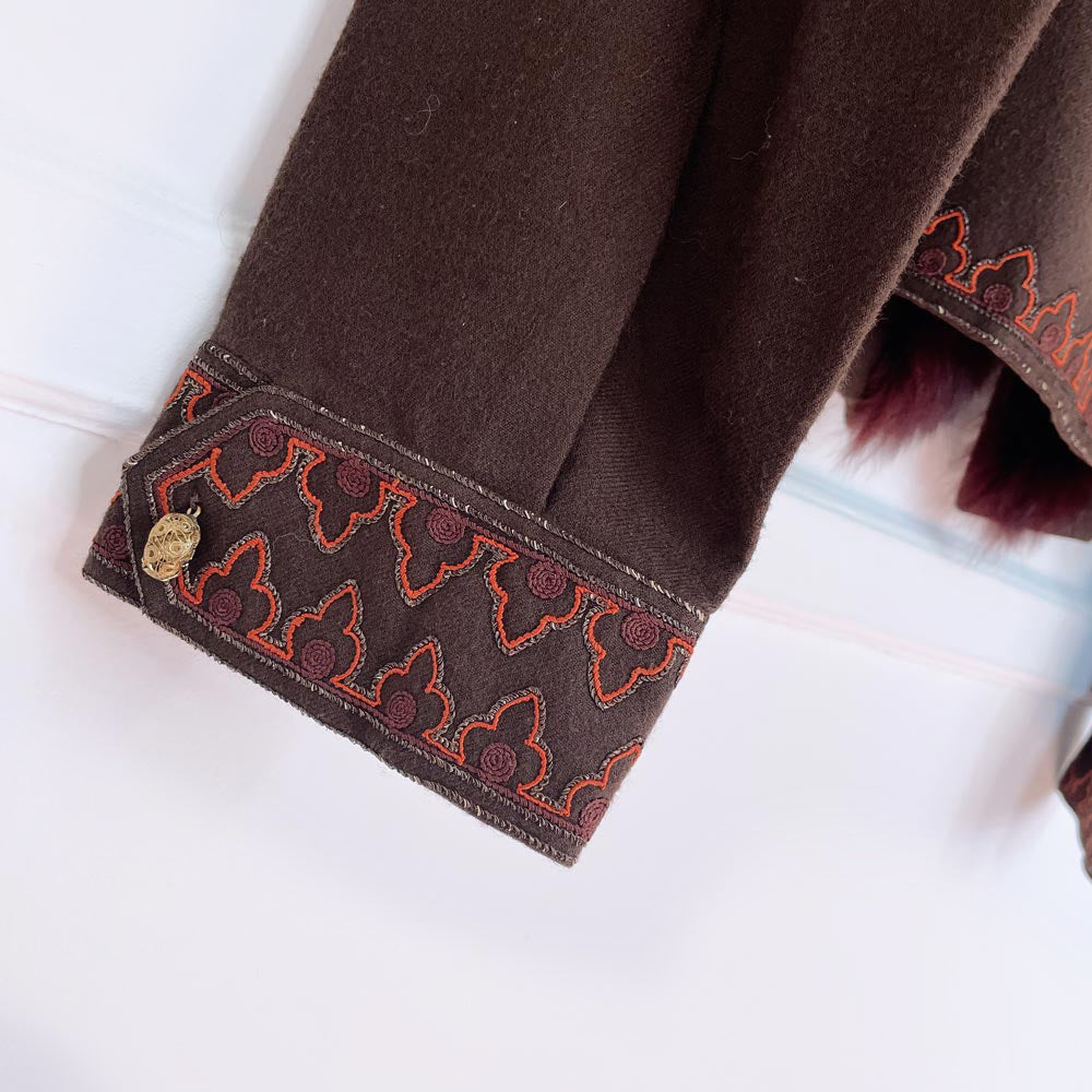 vintage 70s chloé boho wool + fox fur embroidered jacket
