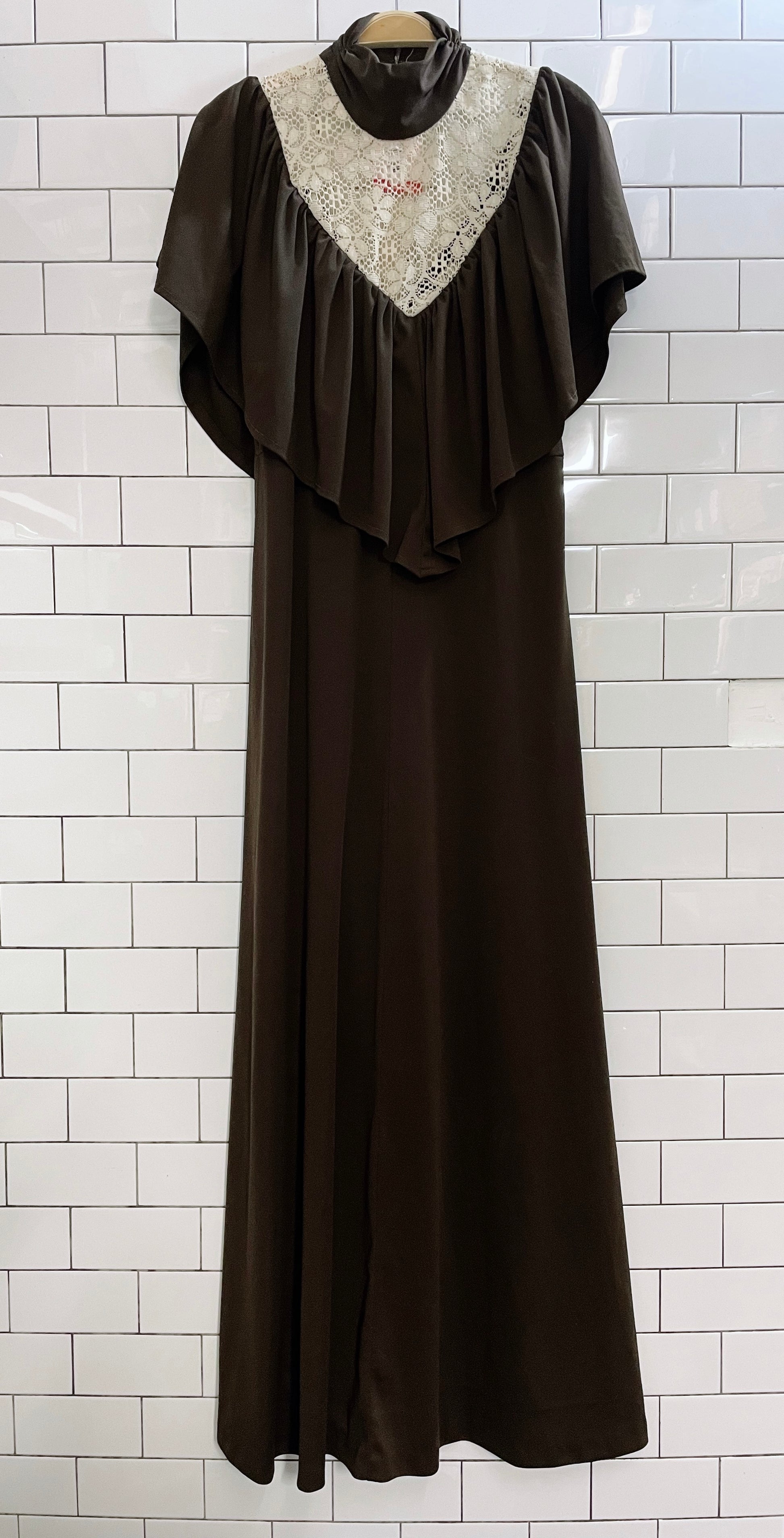 vintage 70s high ruffle neck poly union made dress