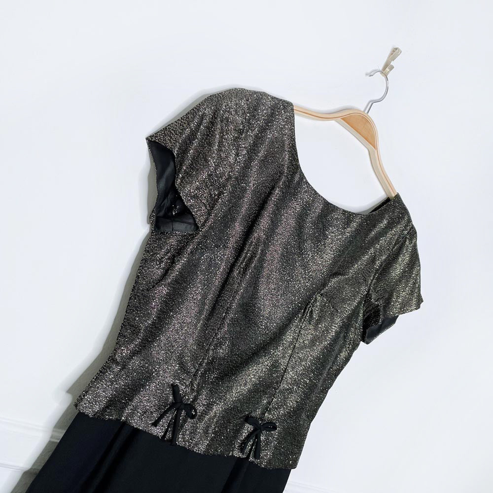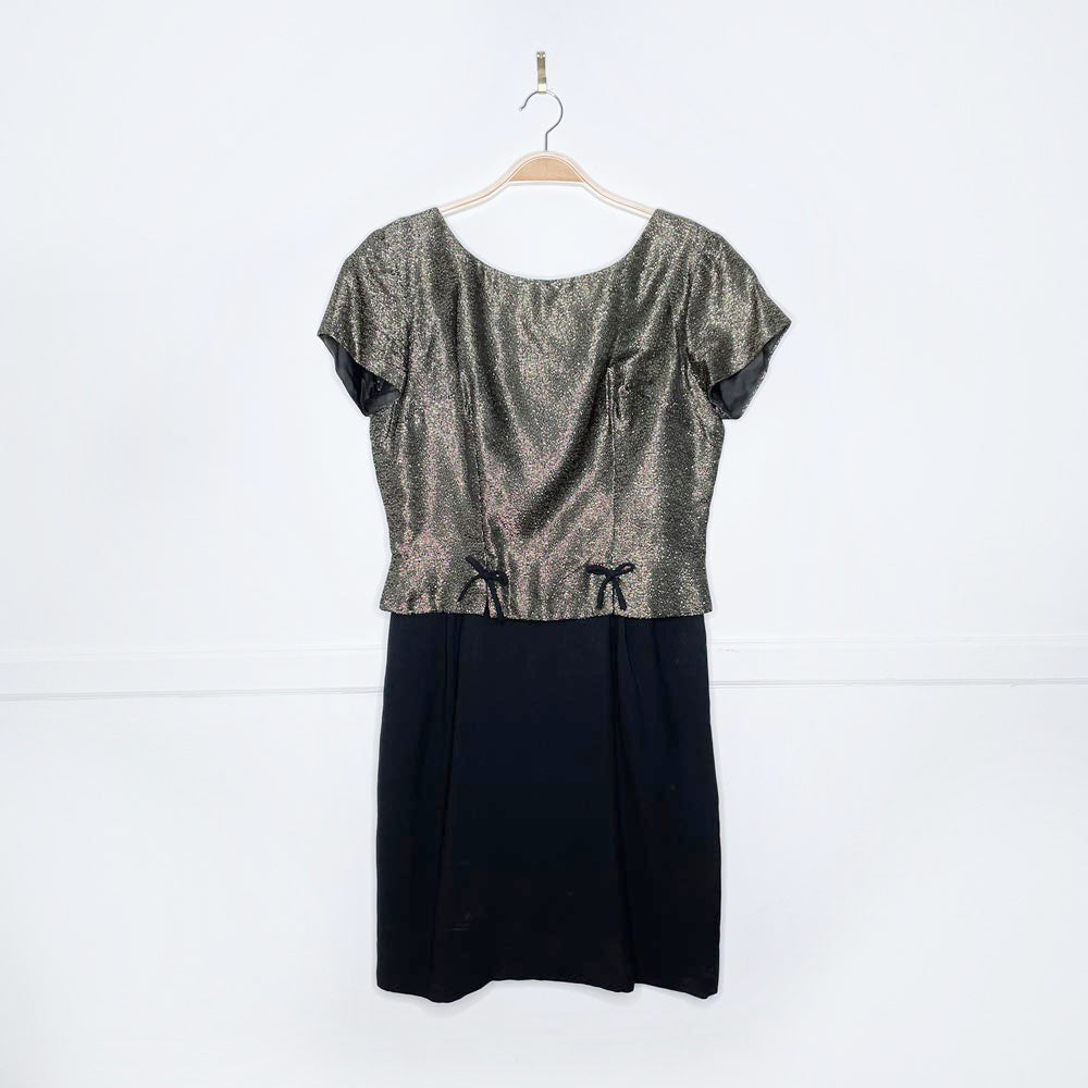 vintage 60s union made lawrence gold bow trim mini dress