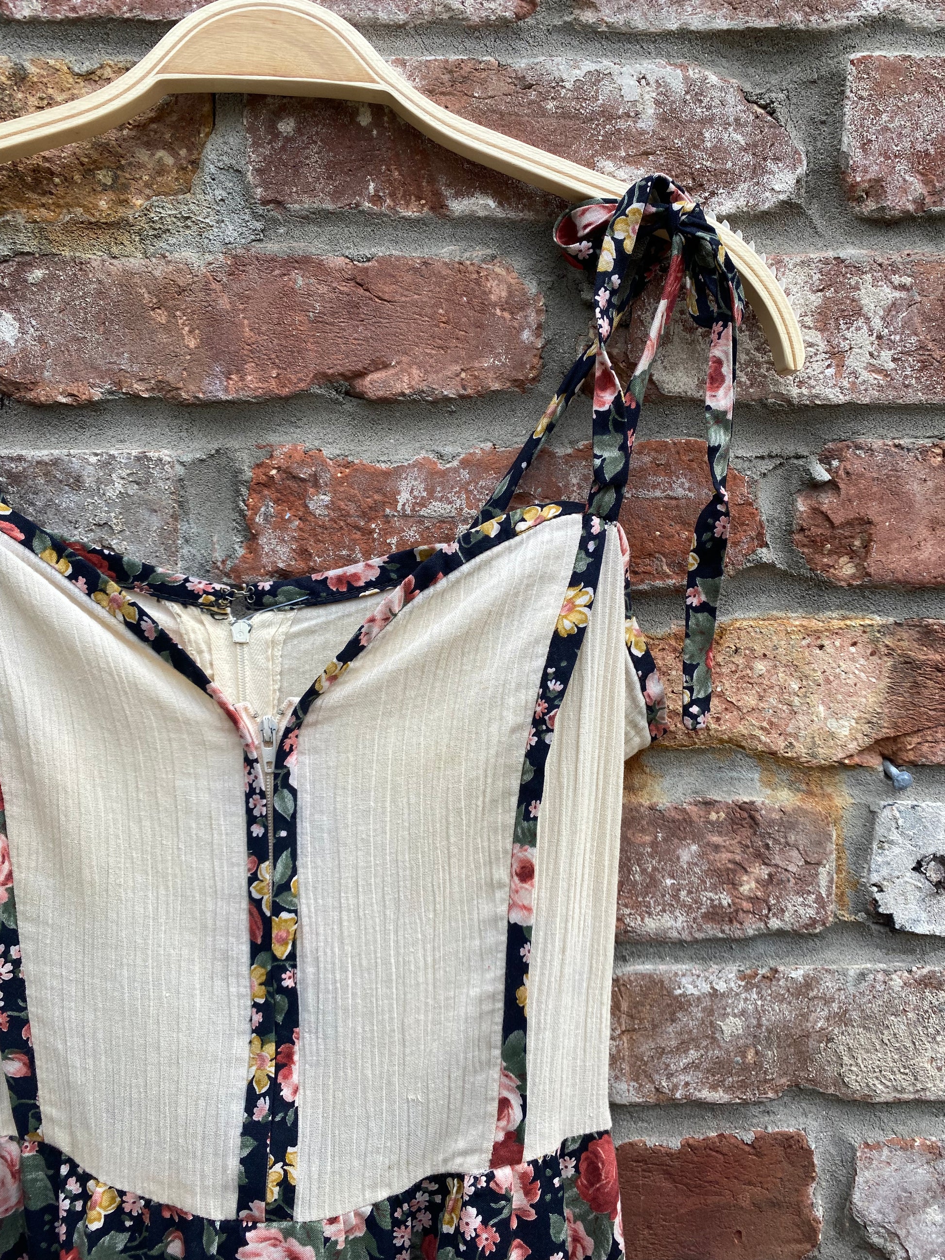 vintage 70s pat farrell floral tie shoulder dress
