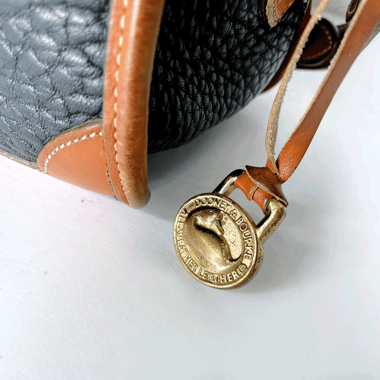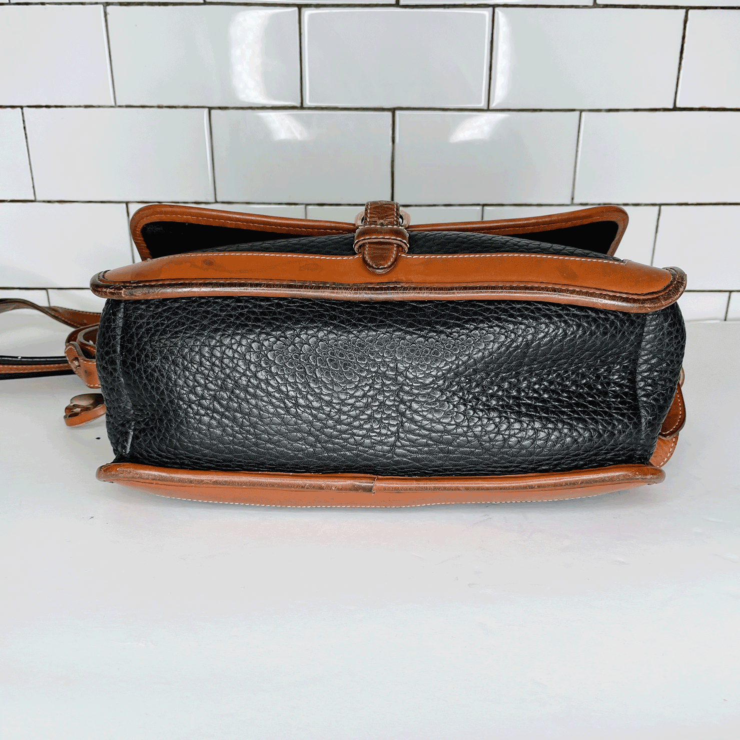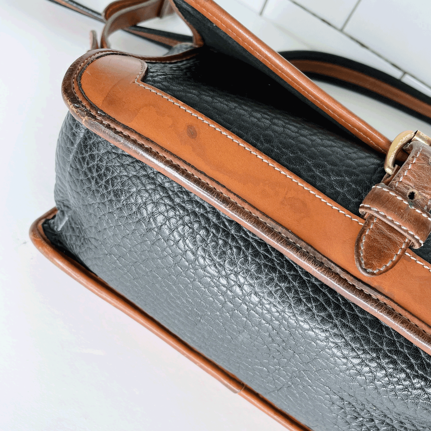 Condition: GREAT 7/10 - gently used, watermarks on front brown leather trim