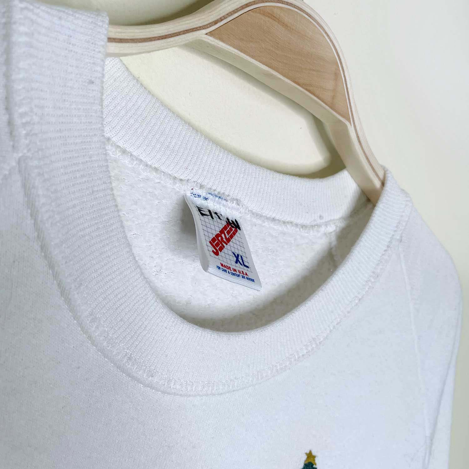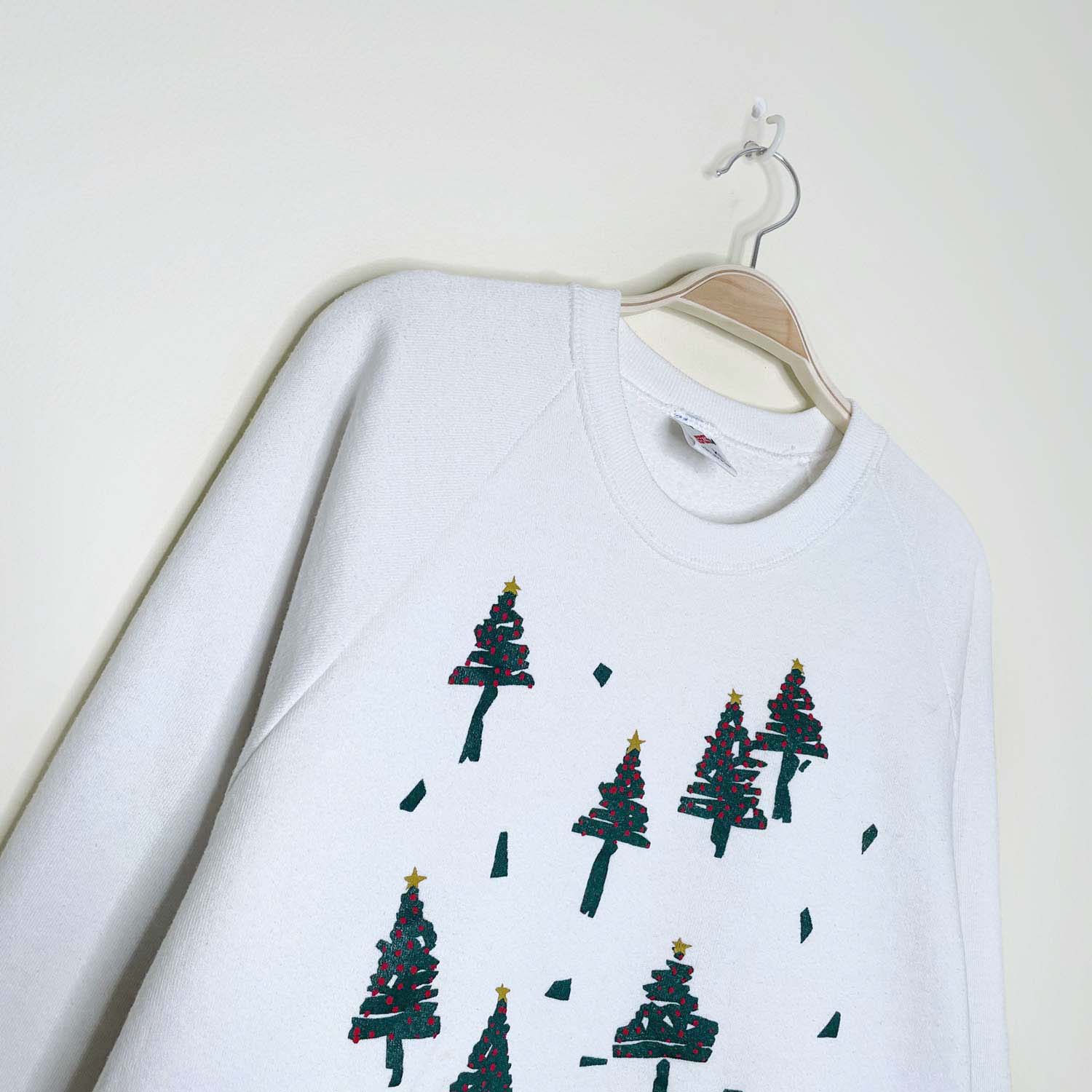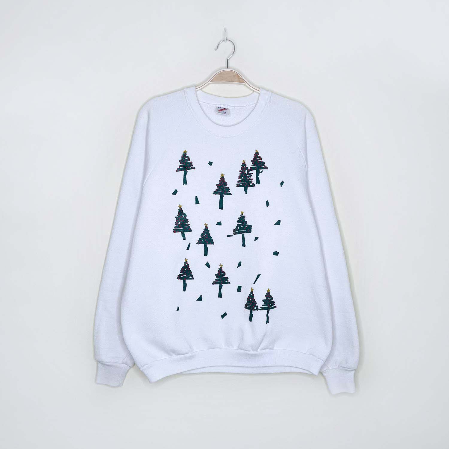 vintage 80s jerzees white christmas tree crew - size xl