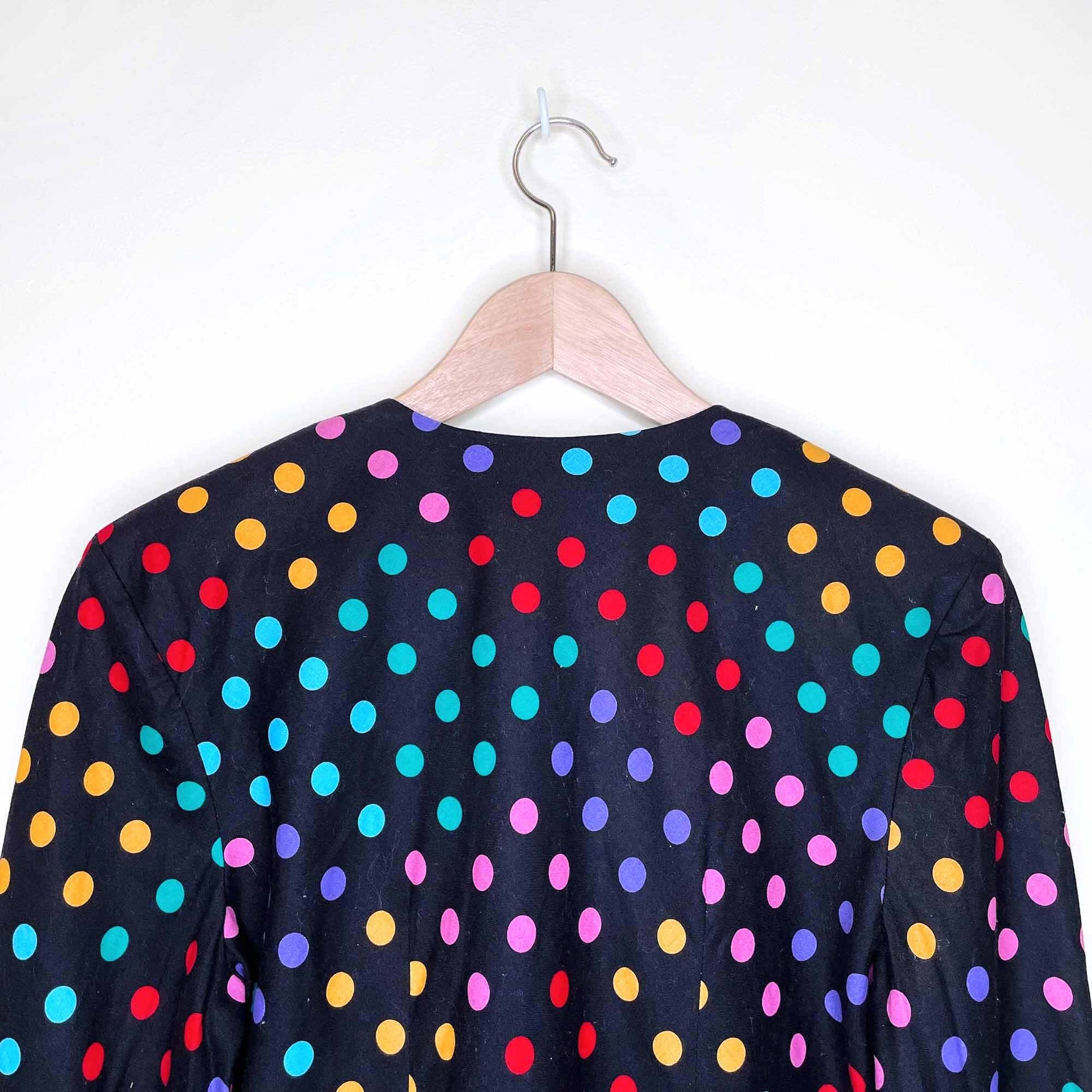 vintage 80's leslie luck cropped rainbow polka dot jacket - size medium