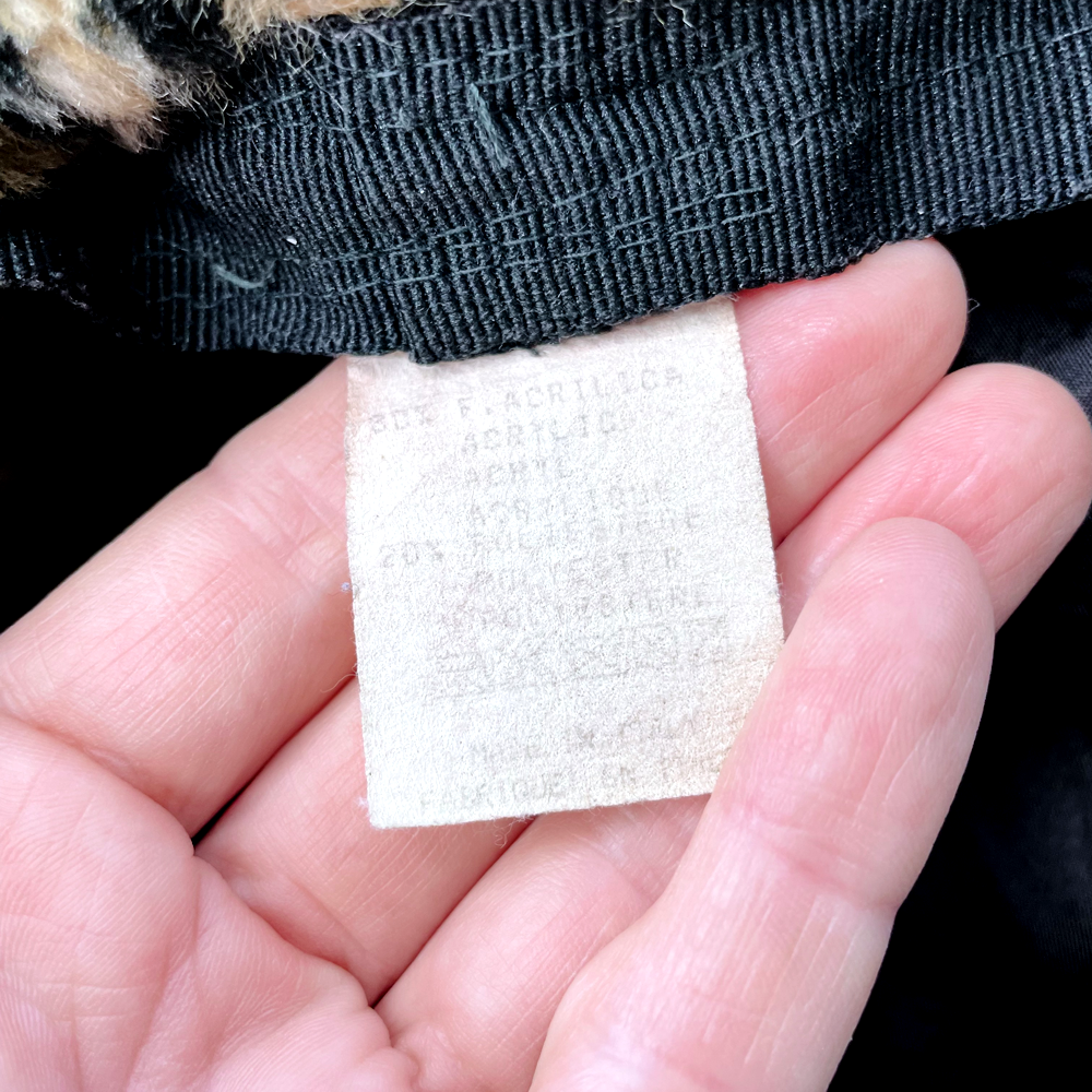 Item Description: Made in France, this vintage 90s bucket hat features an animal print with plush faux fur. 80% acrylic 20% polyester
