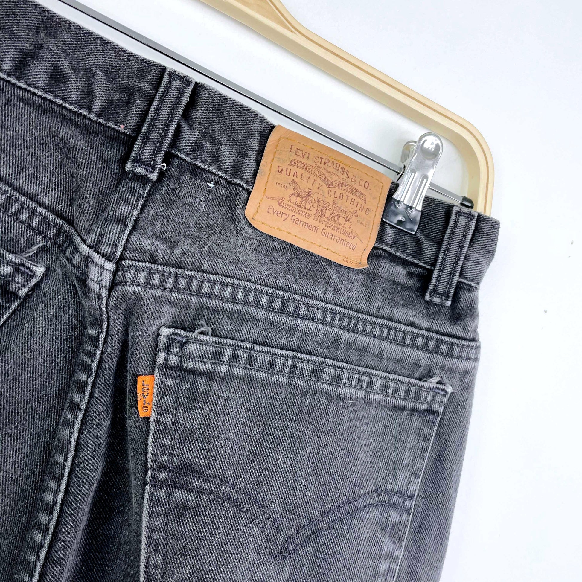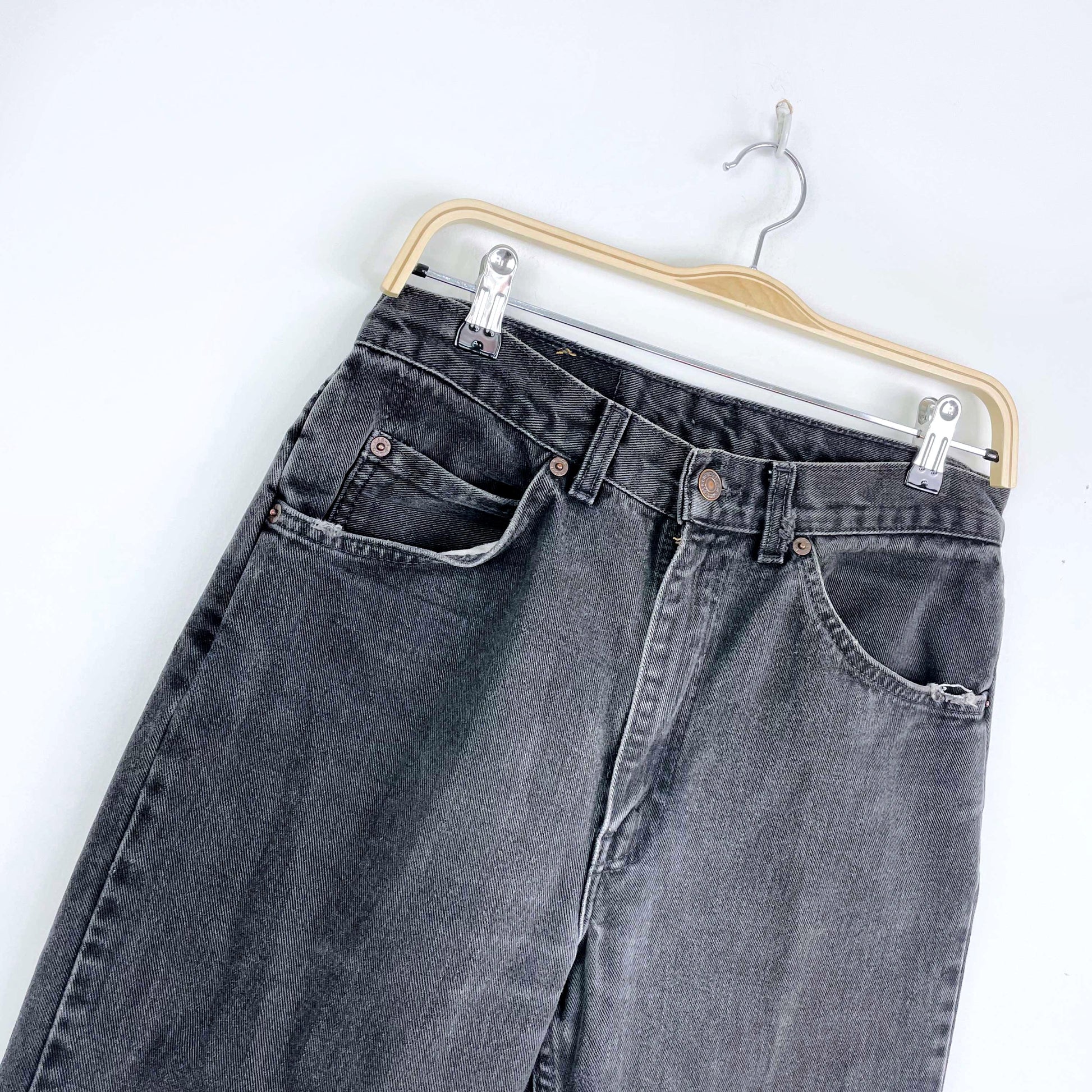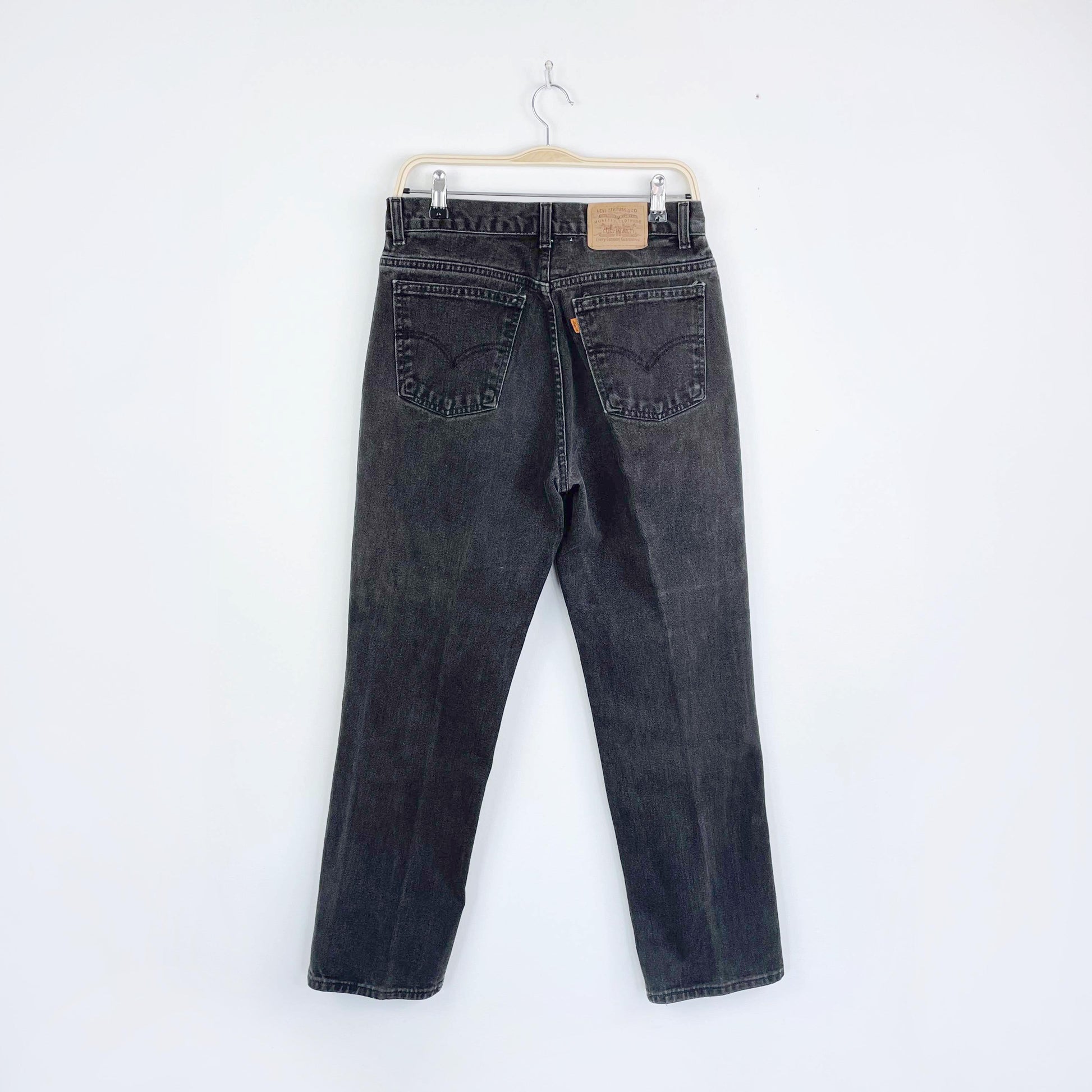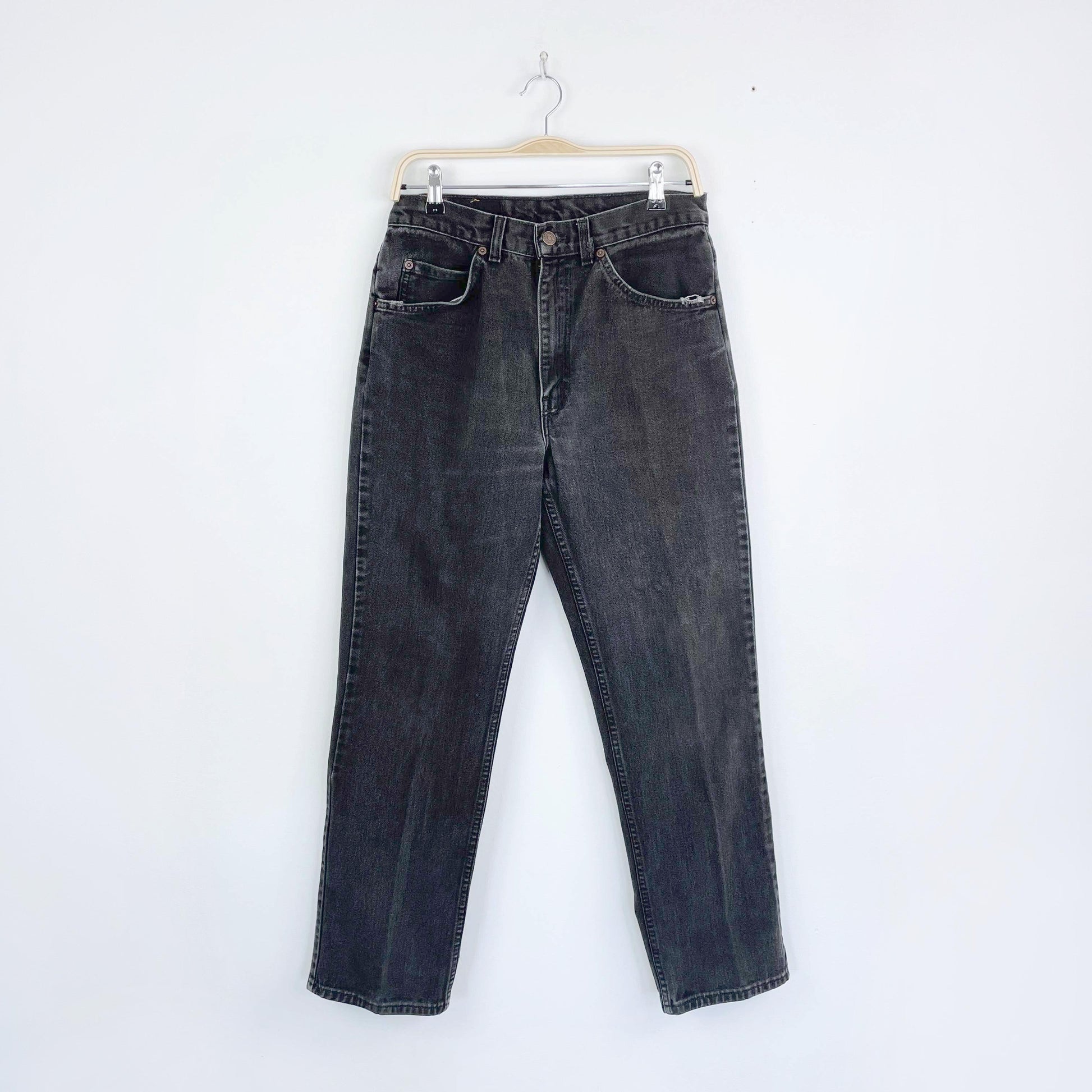 Item description: These vintage levi's are a loose straight-fit jean in a beautiful faded black denim, straight from the 90s. 100% cotton