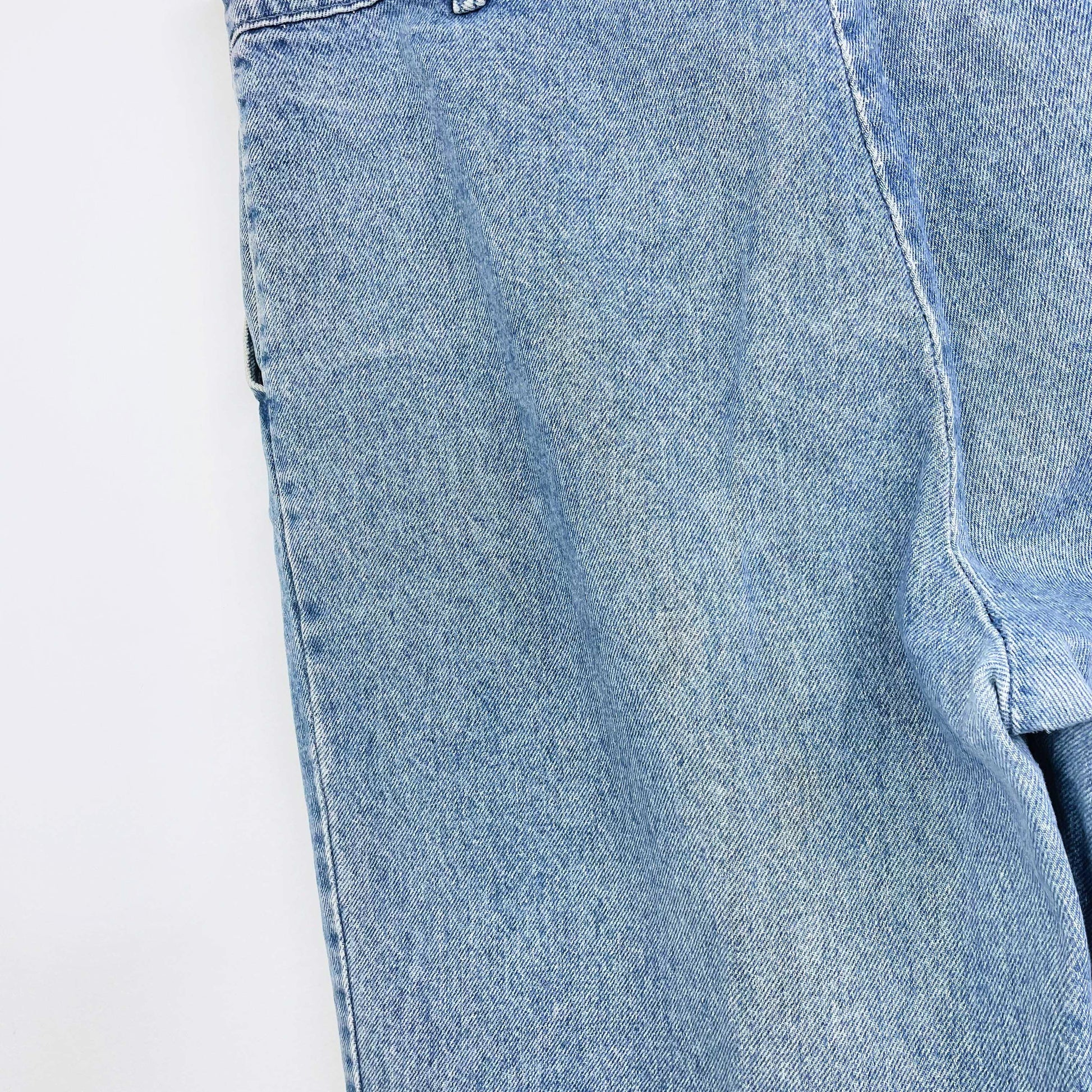 Item description: Okay, we've never seen these before. Levi's did a really short stint of white label jeans in the 90s before they did silver tab in the 00's and these 'medallion' ones are super rare (honestly we've never come across one and we can't find anything exactly like it online). So here you go, Levi's lover. A high rise fit with pleated front (heck ya) and a loose fit - true to 90s style. 100% cotton