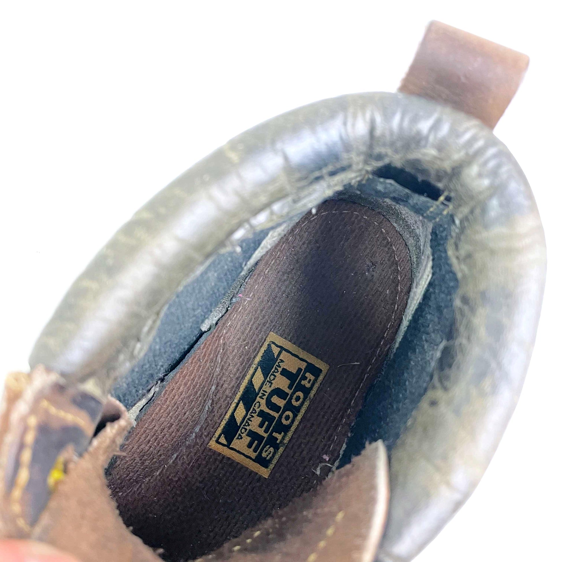 Item description: These classic hiking boots from Roots have been around for generations. These ones feature a brushed leather upper and rubber lug sole, with lace up closure and pull tab back heel.