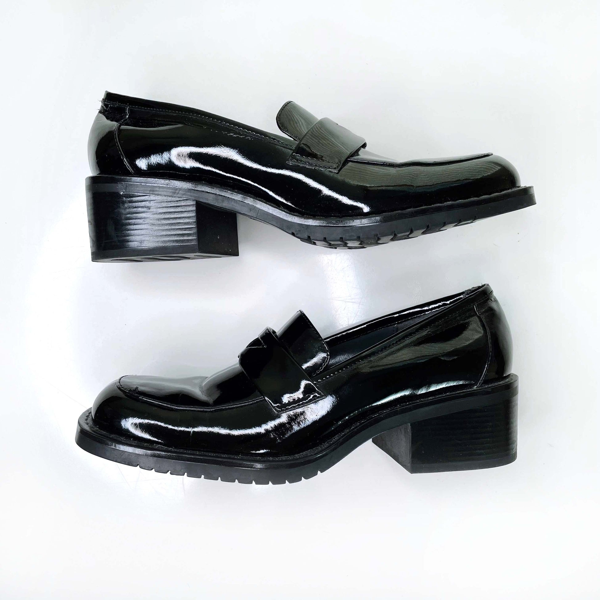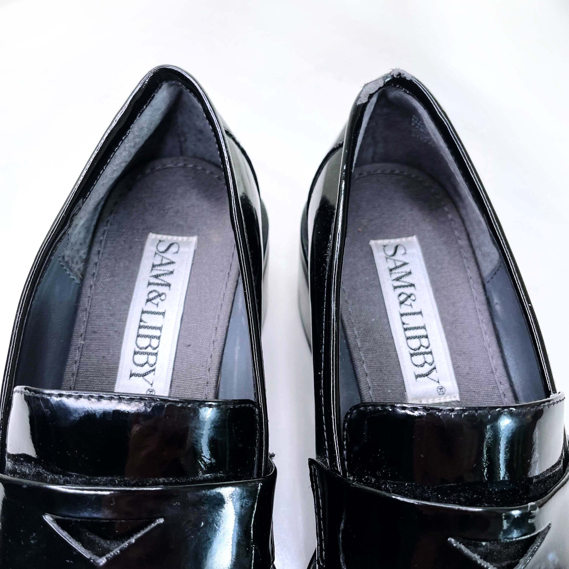 vintage 90s sam & libby black patent chunky loafers - size 6