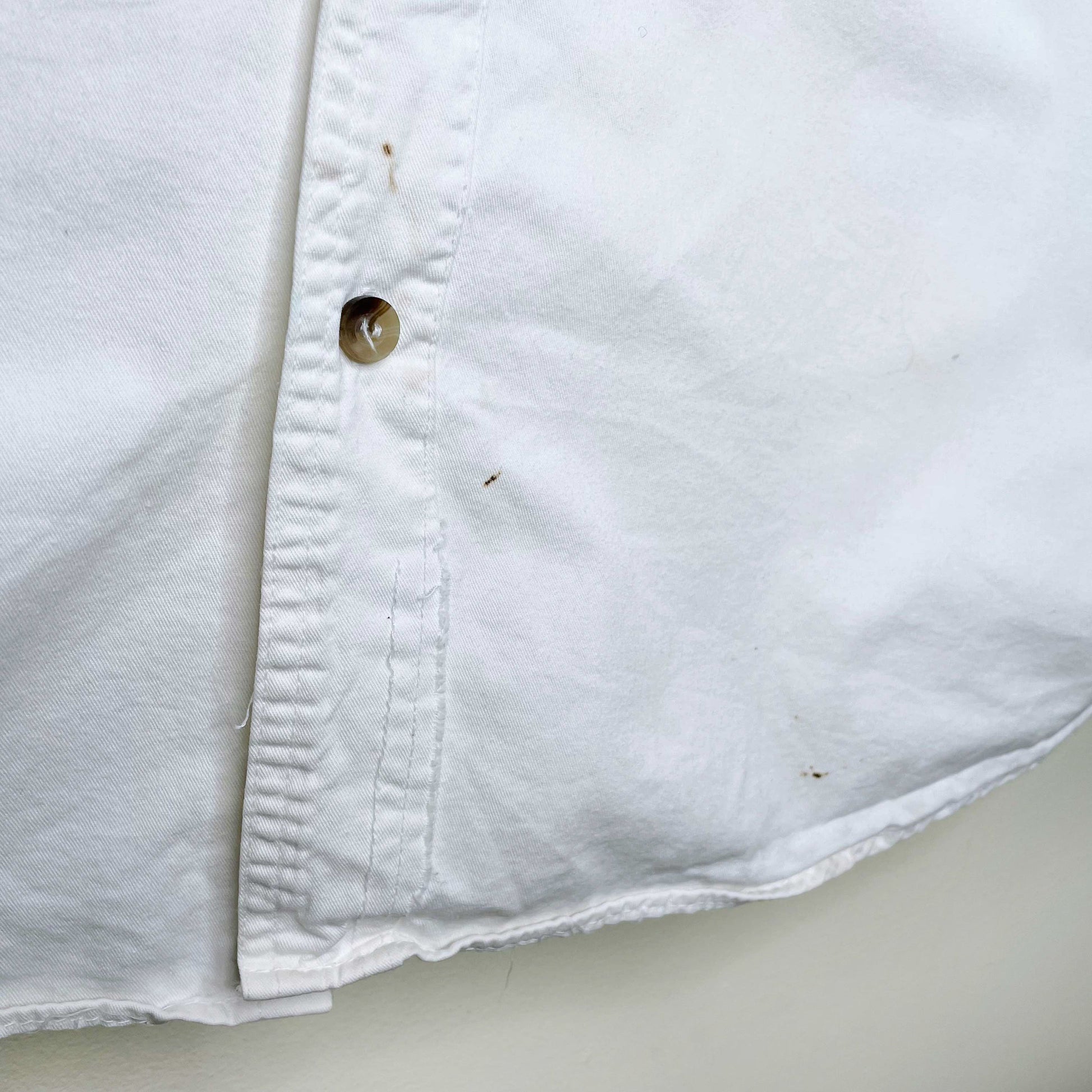 Condition: GOOD 8/10 - few spots on front near hem and inside neckline has some wear. This has not been washed but I assume a little soak will solve most of the flaws noted.