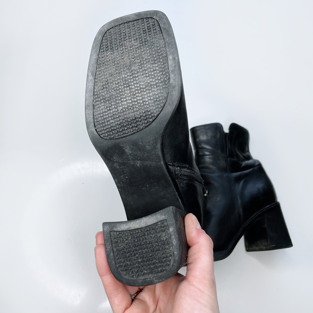 vintage bata chunky sole black leather square toe heeled boots - size 7