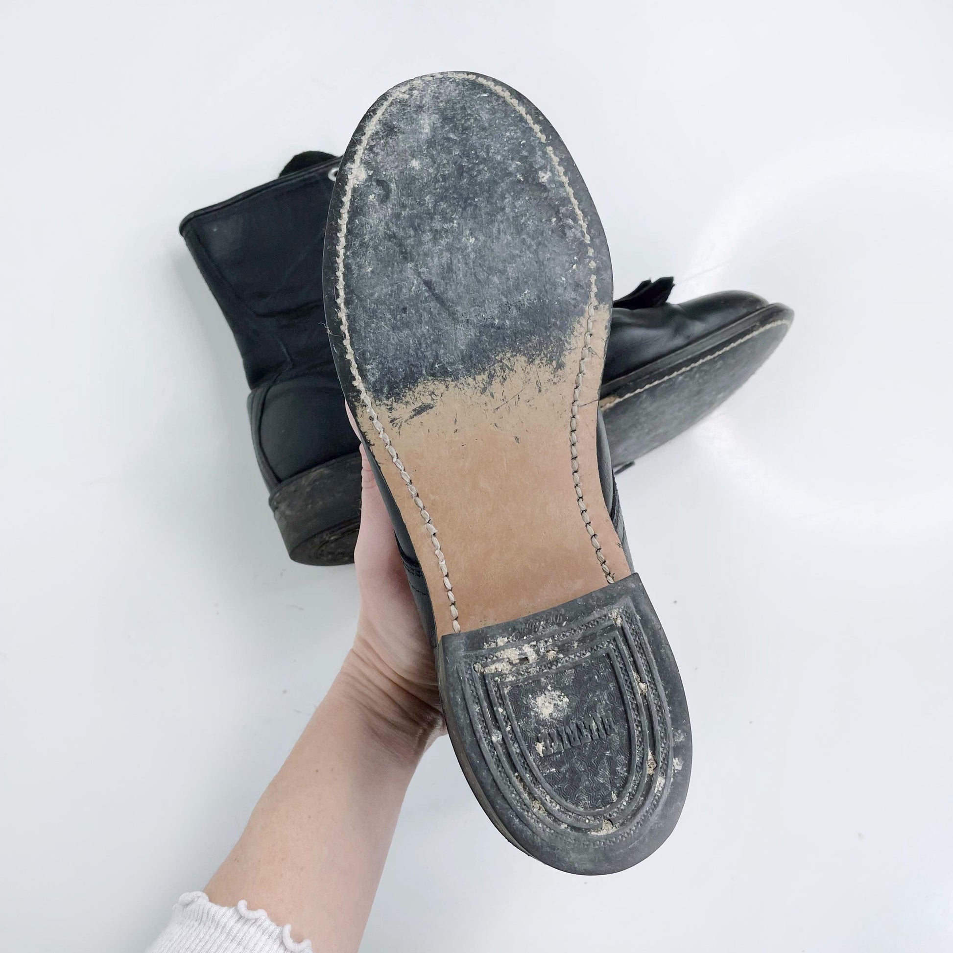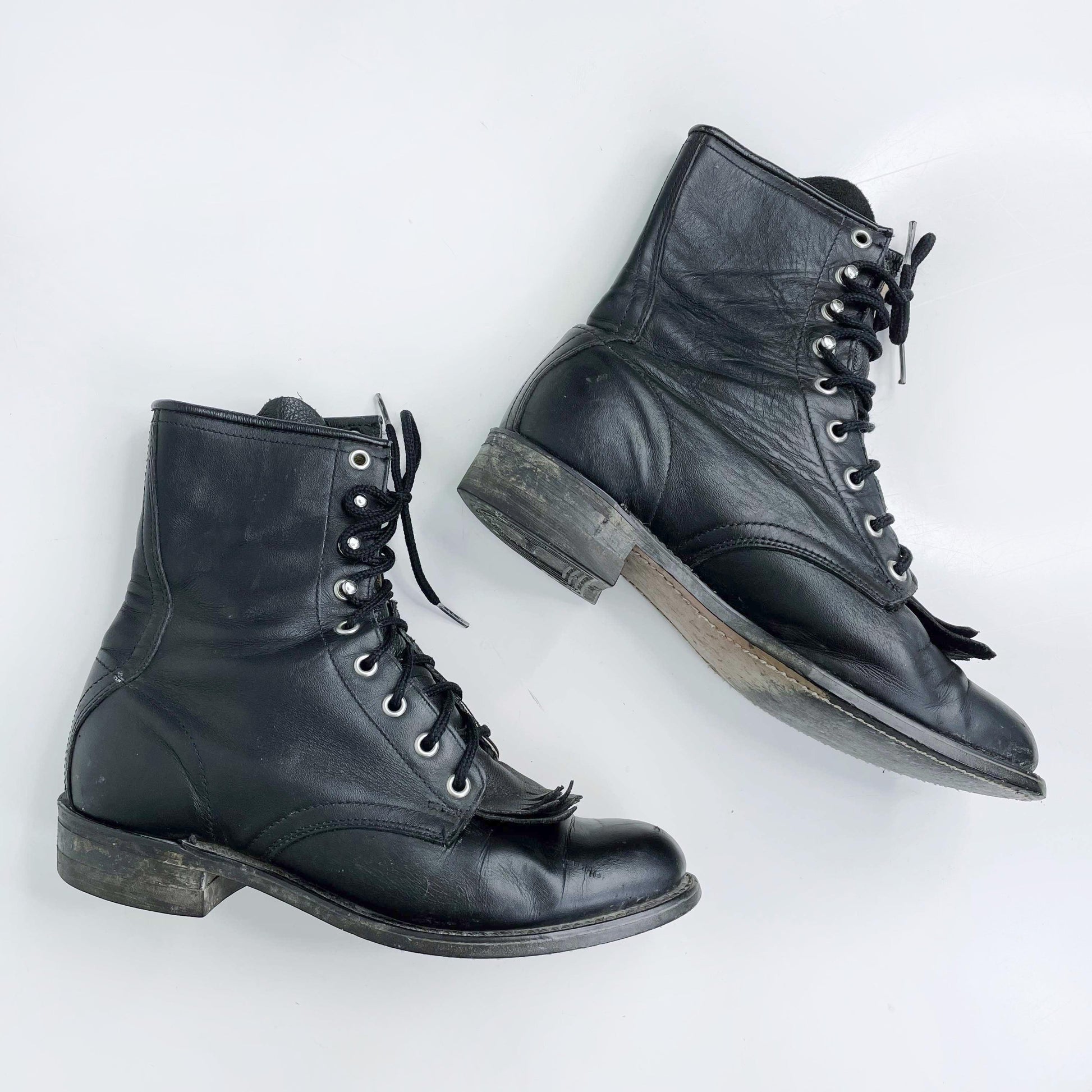 vintage black leather rodeo kiltie roper boot - size 7.5