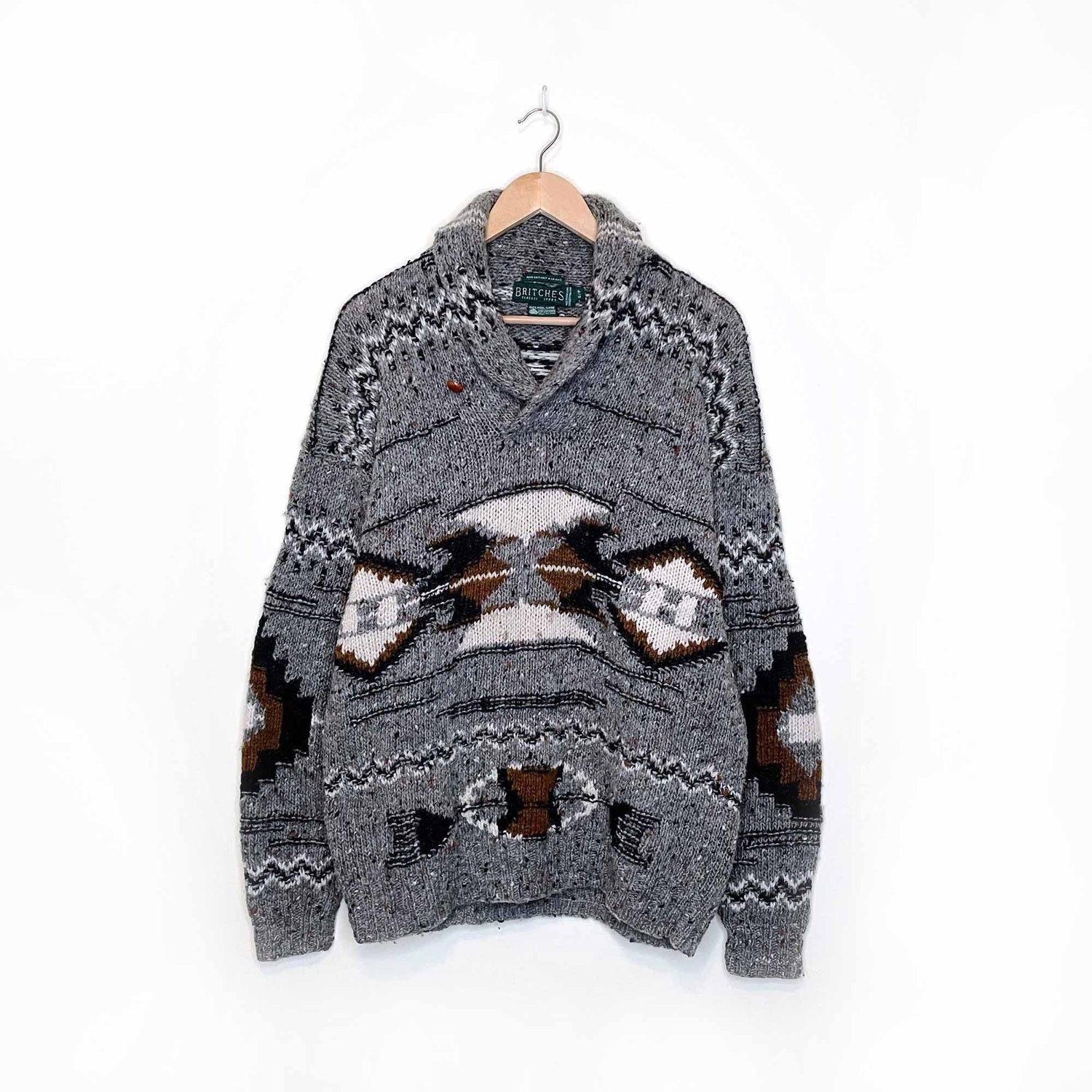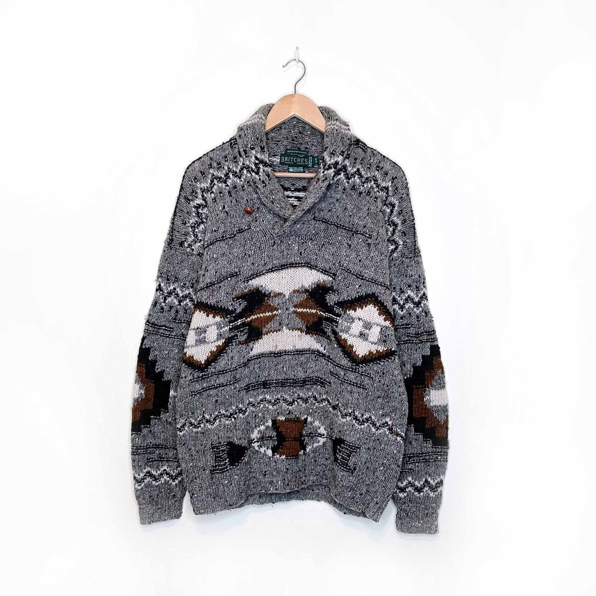 vintage britches 100% wool hand-knit southwestern pullover sweater - size small