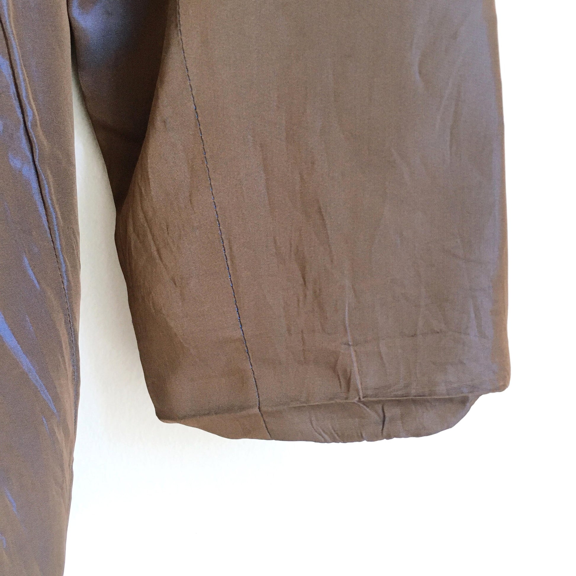 Item Description: The futuristic look of iridescent fabrics is making its way back into high end designer runway collections. Take for example the grey/orange Givenchy version in the sample image provided. Get the look for less with this original unisex vintage Burberrys of London brown/purple/orange version. 100% acetate Made in the USA