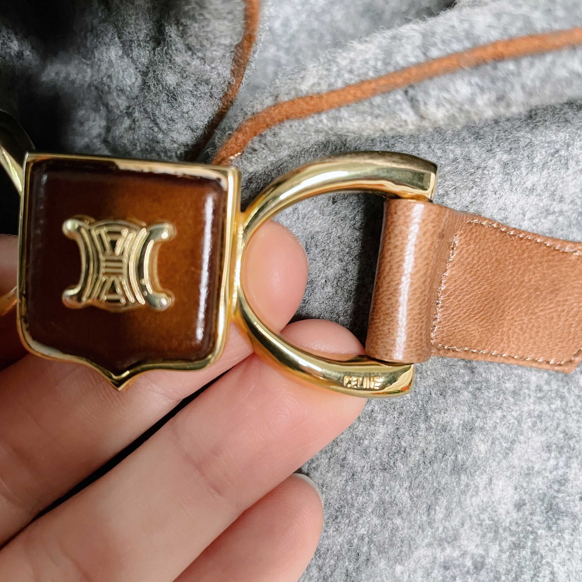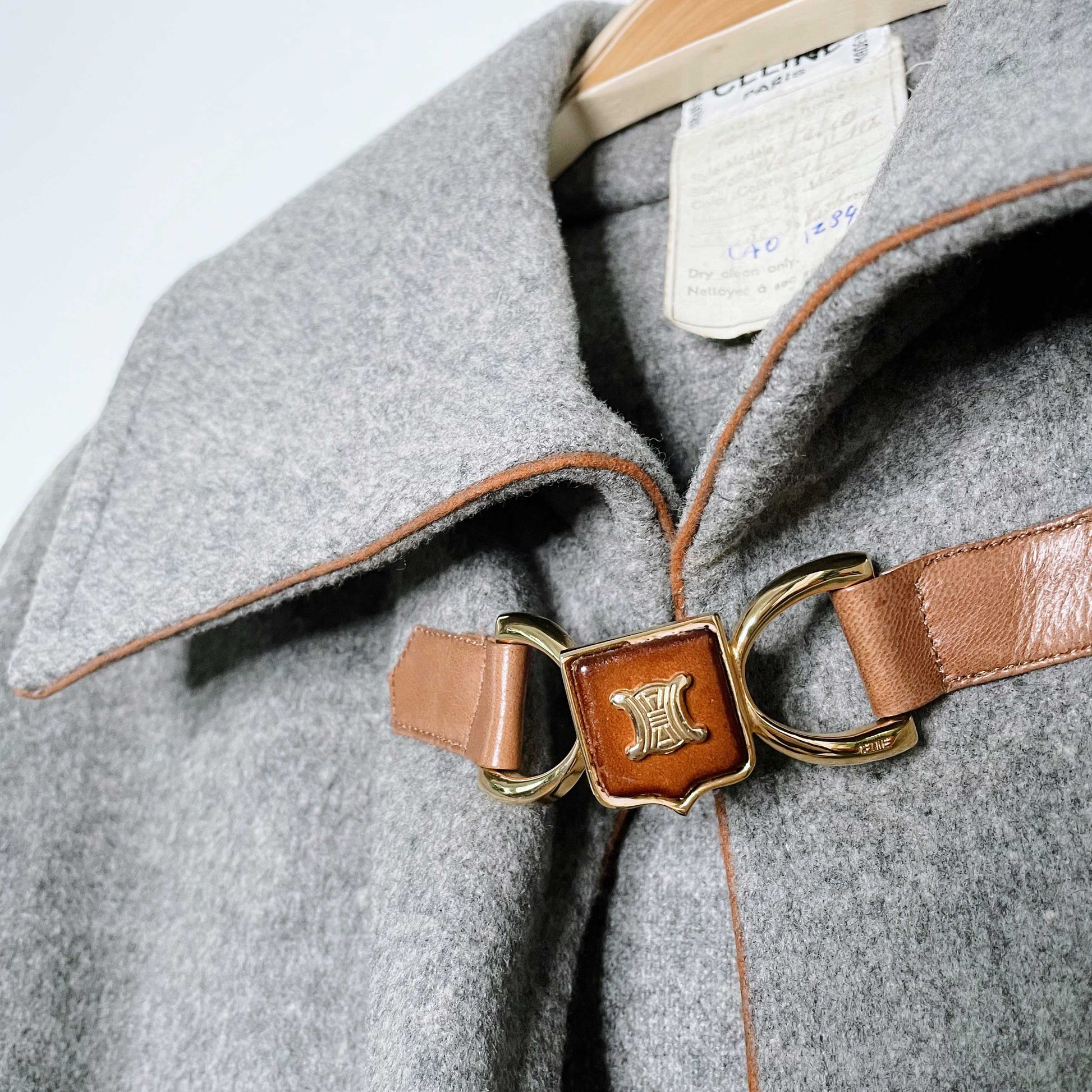 Item description: *gasp* This S-T-U-N-N-I-N-G floor length cape from Céline was made in France with a wool and cashmere blend and finished with leather trim and a logo-embellished front clasp. Have you fainted yet? Yes, we're swooning too. 70% wool 30% cashmere