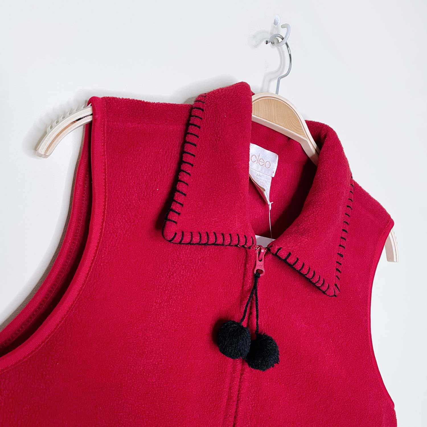 vintage cleo fleece snowflake blanket stitch vest - size small