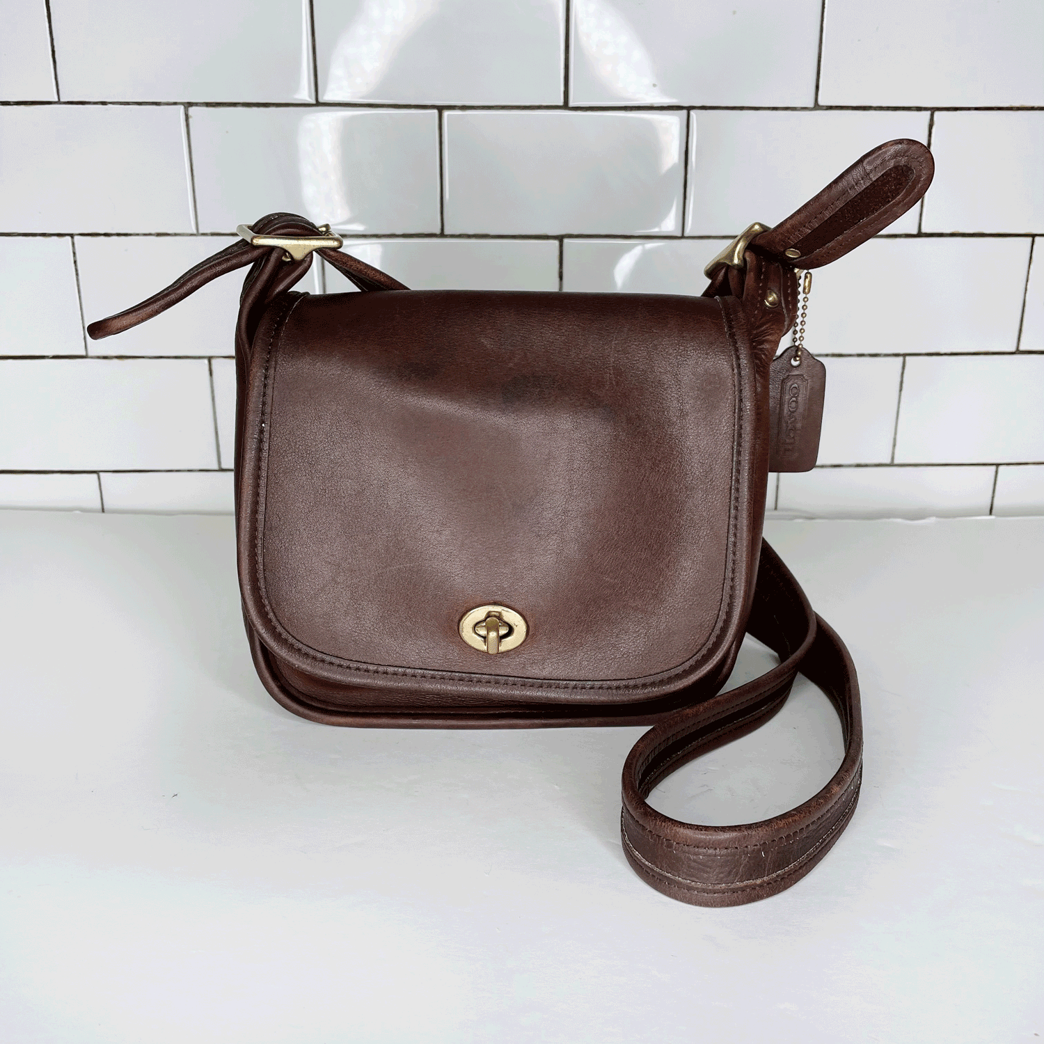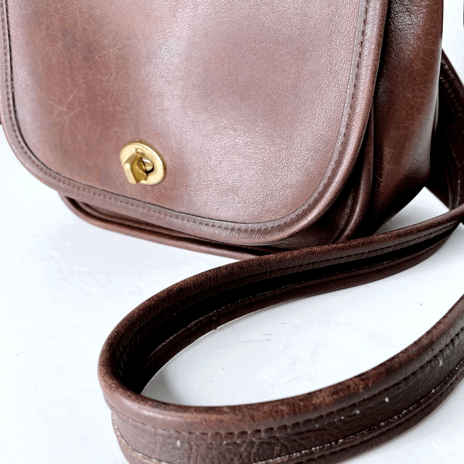vintage 70s coach legacy trail brown small turn lock crossbody