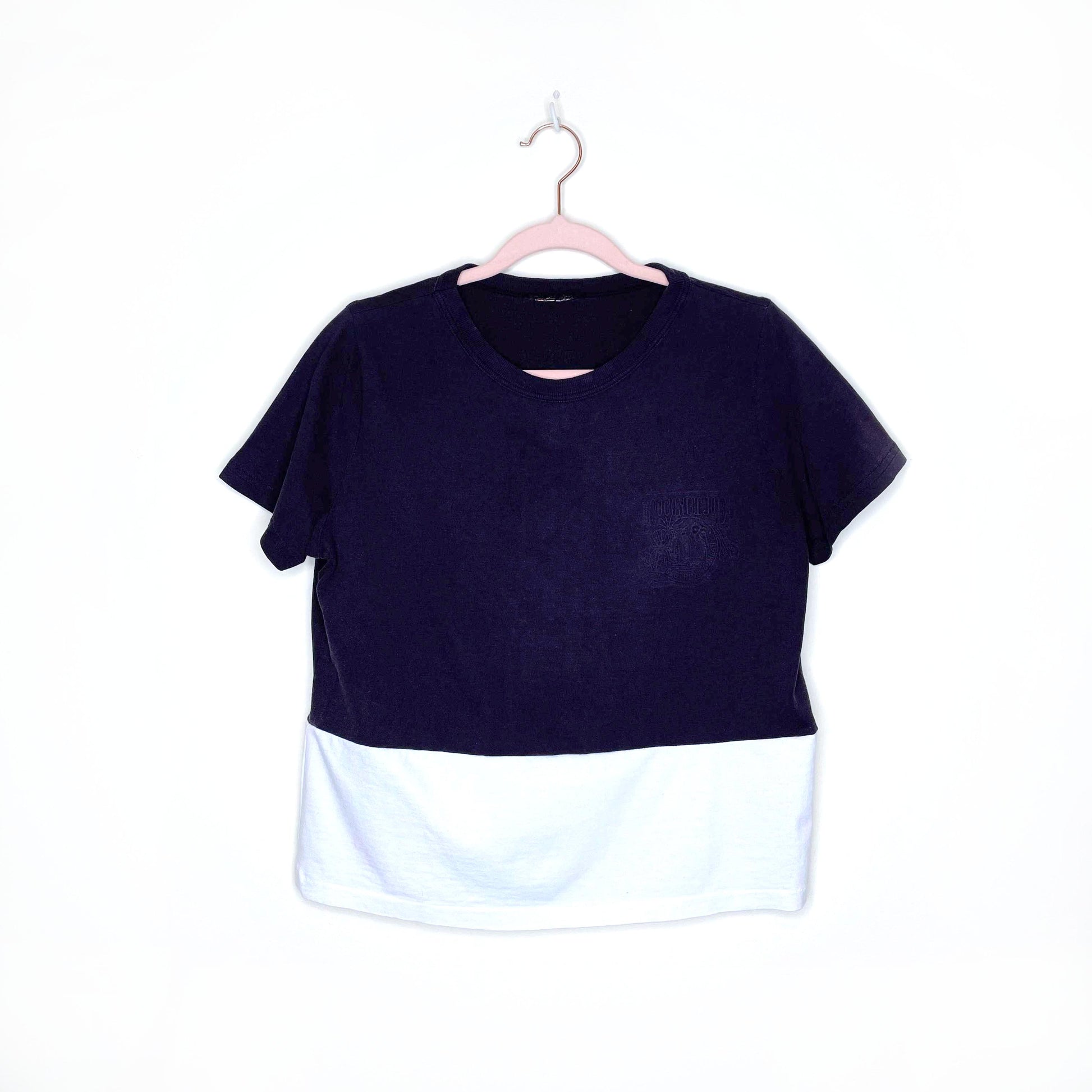 Item Description: This vintage coconut joe colourblock tee is bananas. A debossed logo gives a subtle, minimalist look while the colourblock hem gives a funky twist. Perfect for chilling out on a hot day. 100% cotton