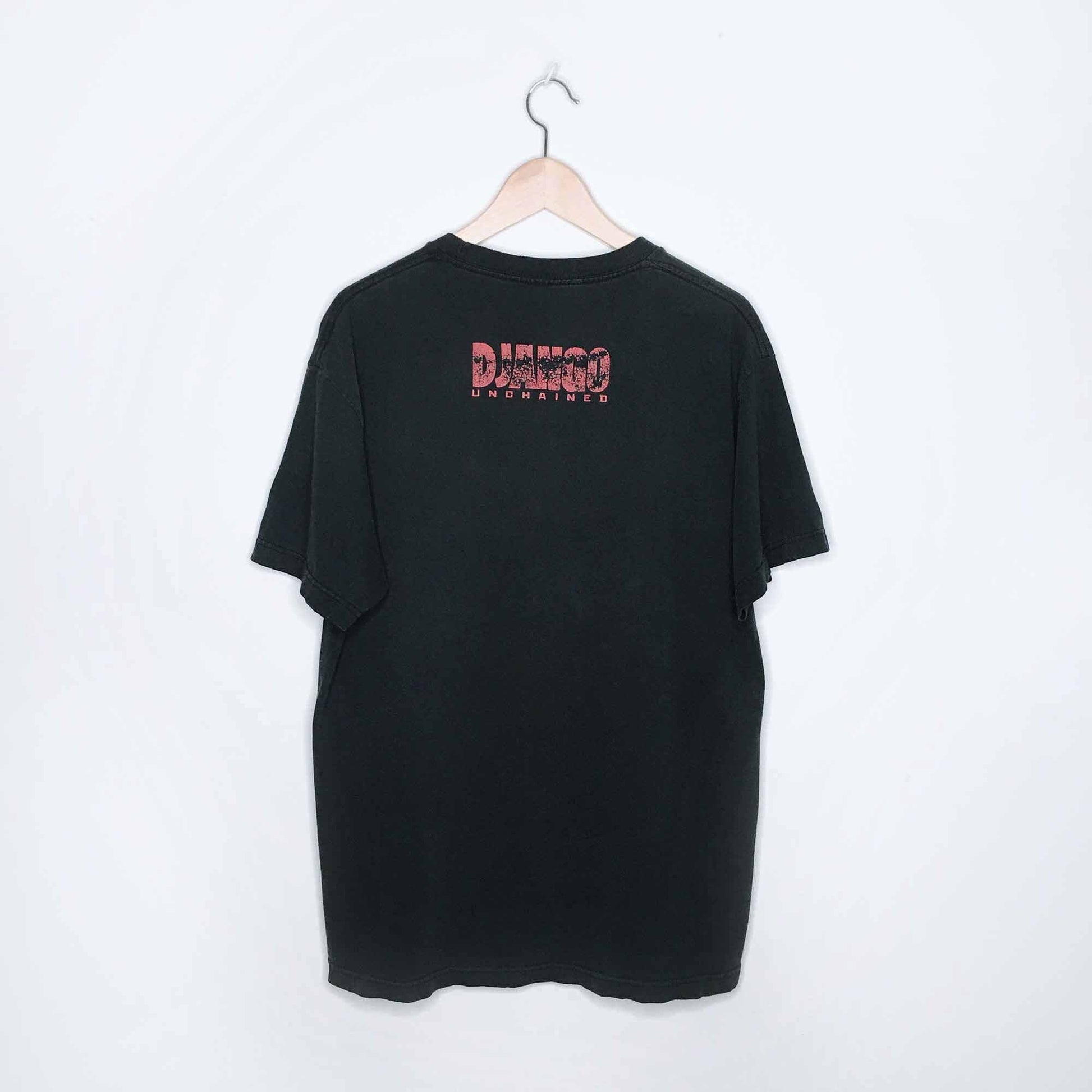 Item Description: This highly sought after version of the Django Unchained movie poster t-shirt features worn-in vintage graphics on a classic cotton tee. 100% cotton