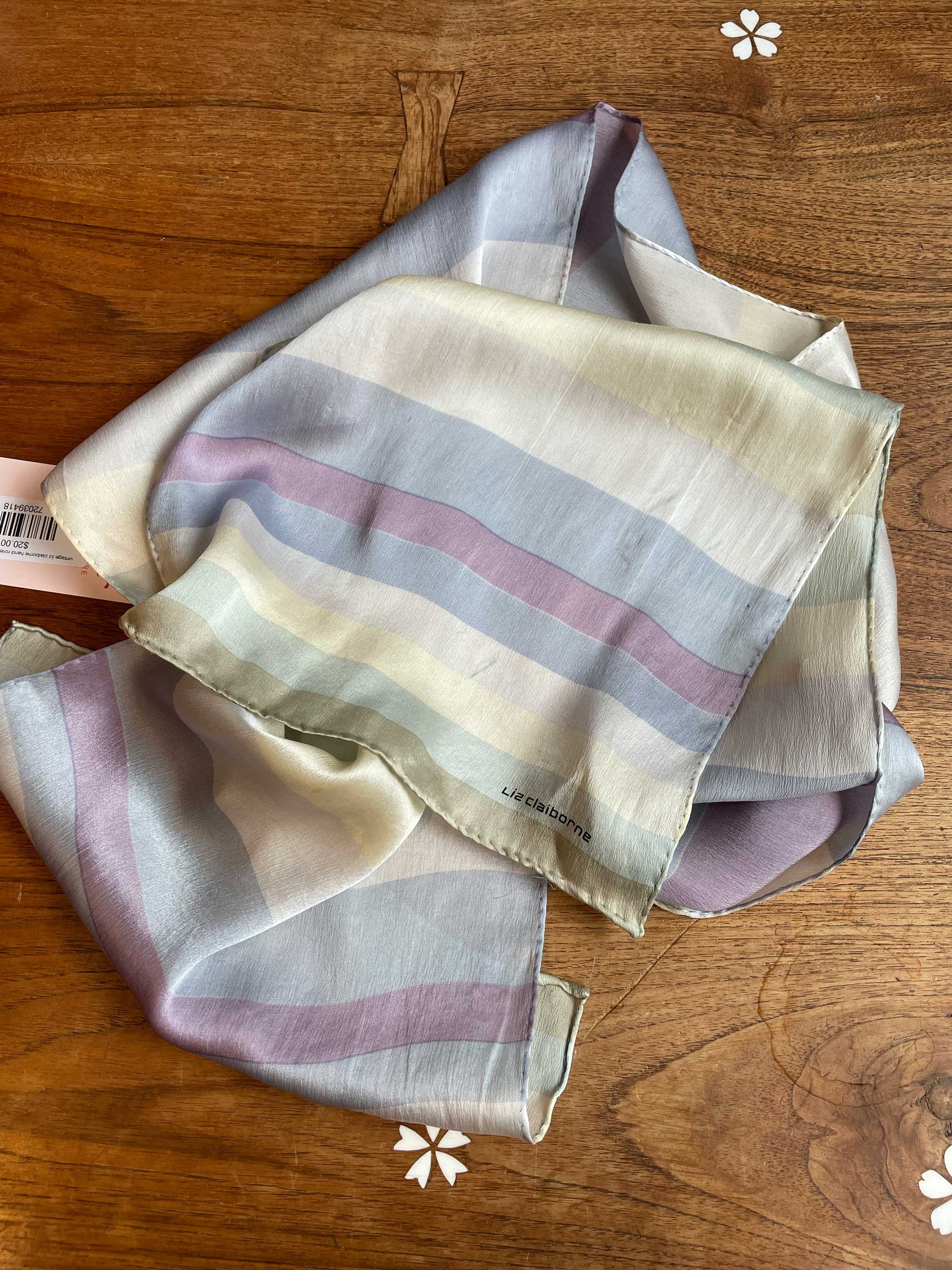 vintage liz claiborne hand-rolled pastel stripes silk scarf