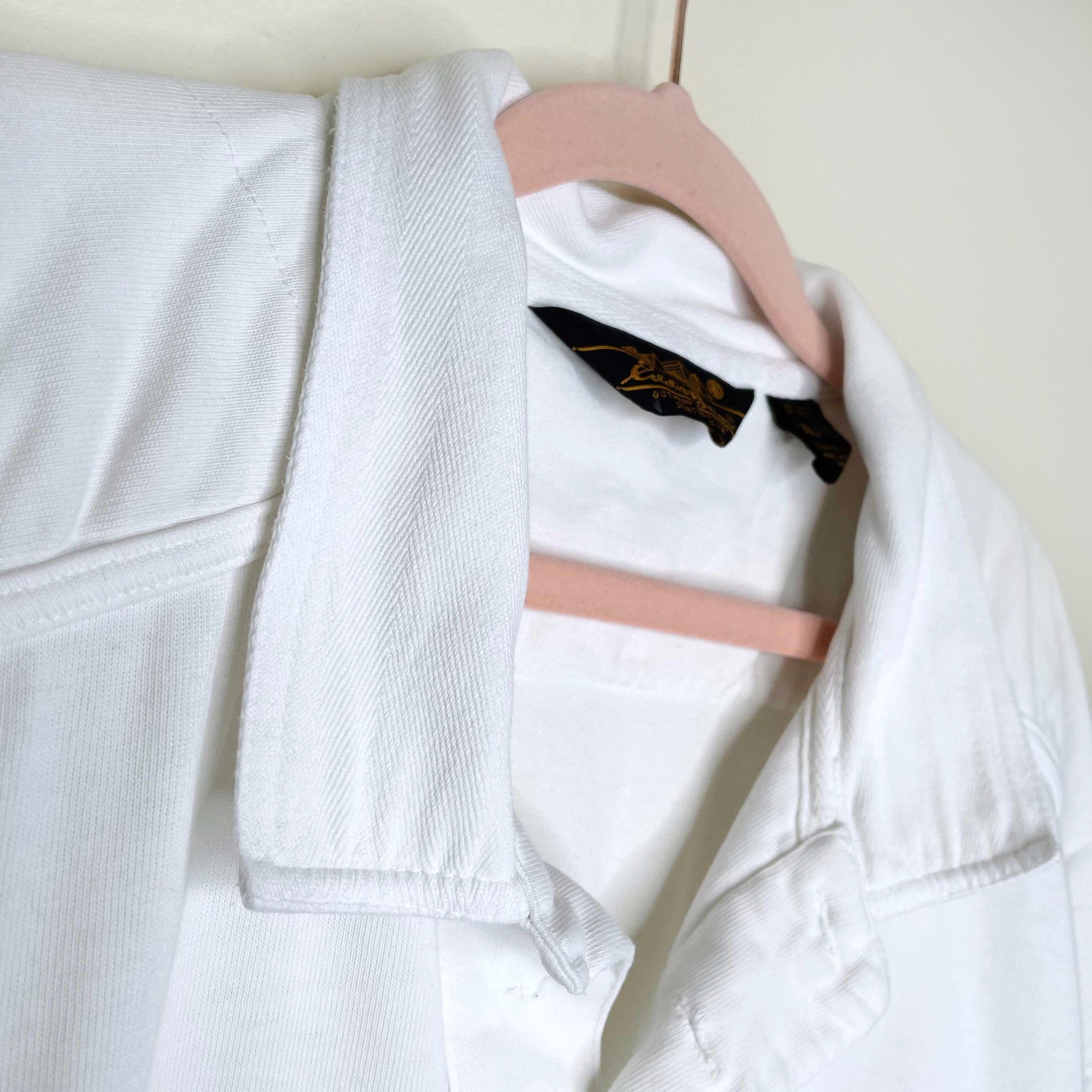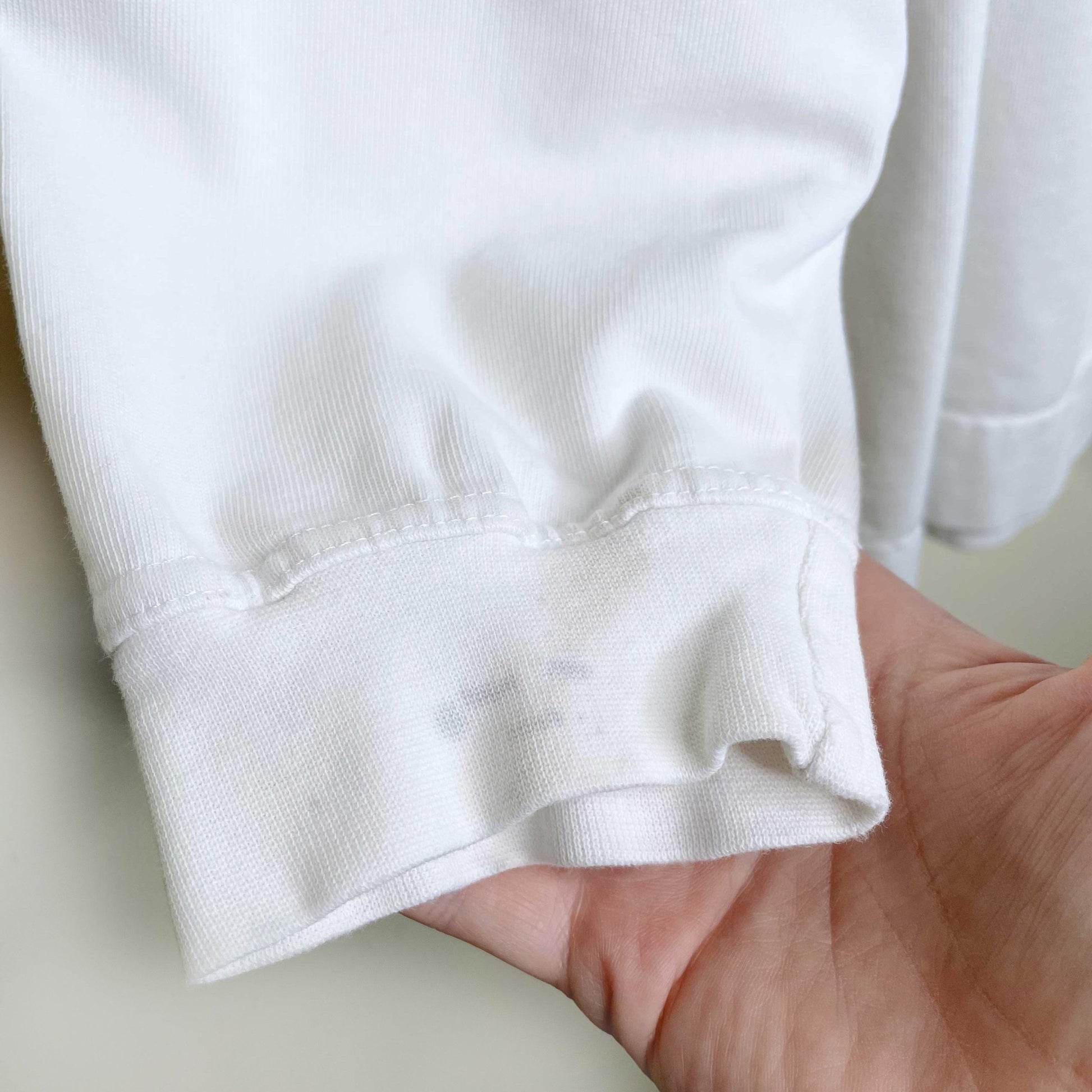 Condition: GREAT 9/10 - spot on front and cuff - this was pre-treated with a stain remover and then soaked in oxi-clean but the spots remain….sigh - super cool shirt tho!