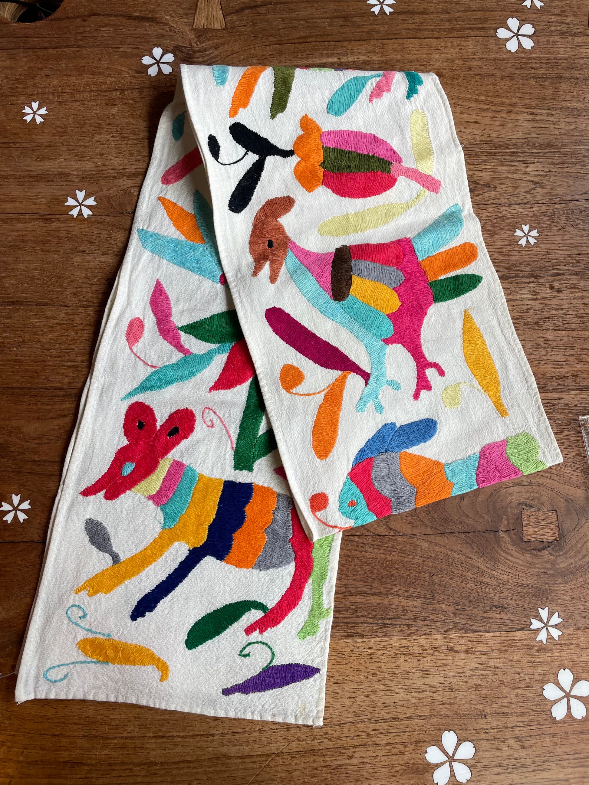 vintage embroidered folk animals tapestry