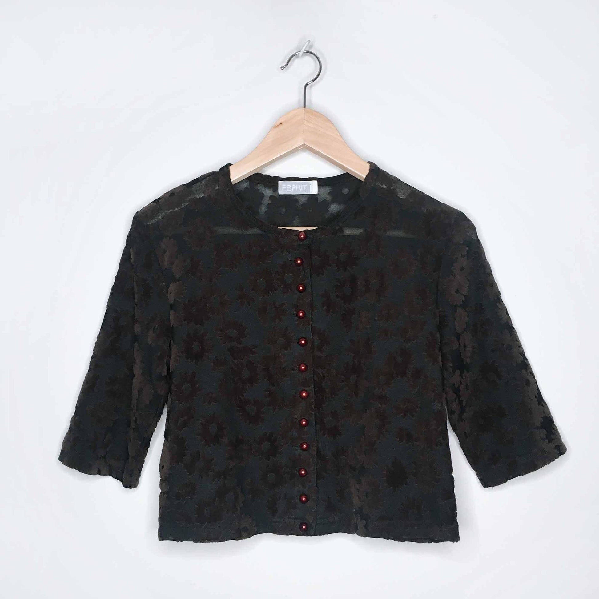 Item Description: This ultra rad daisy burnout crop from Esprit features a button down front and cropped silhouette. No content tag but super stretchy.