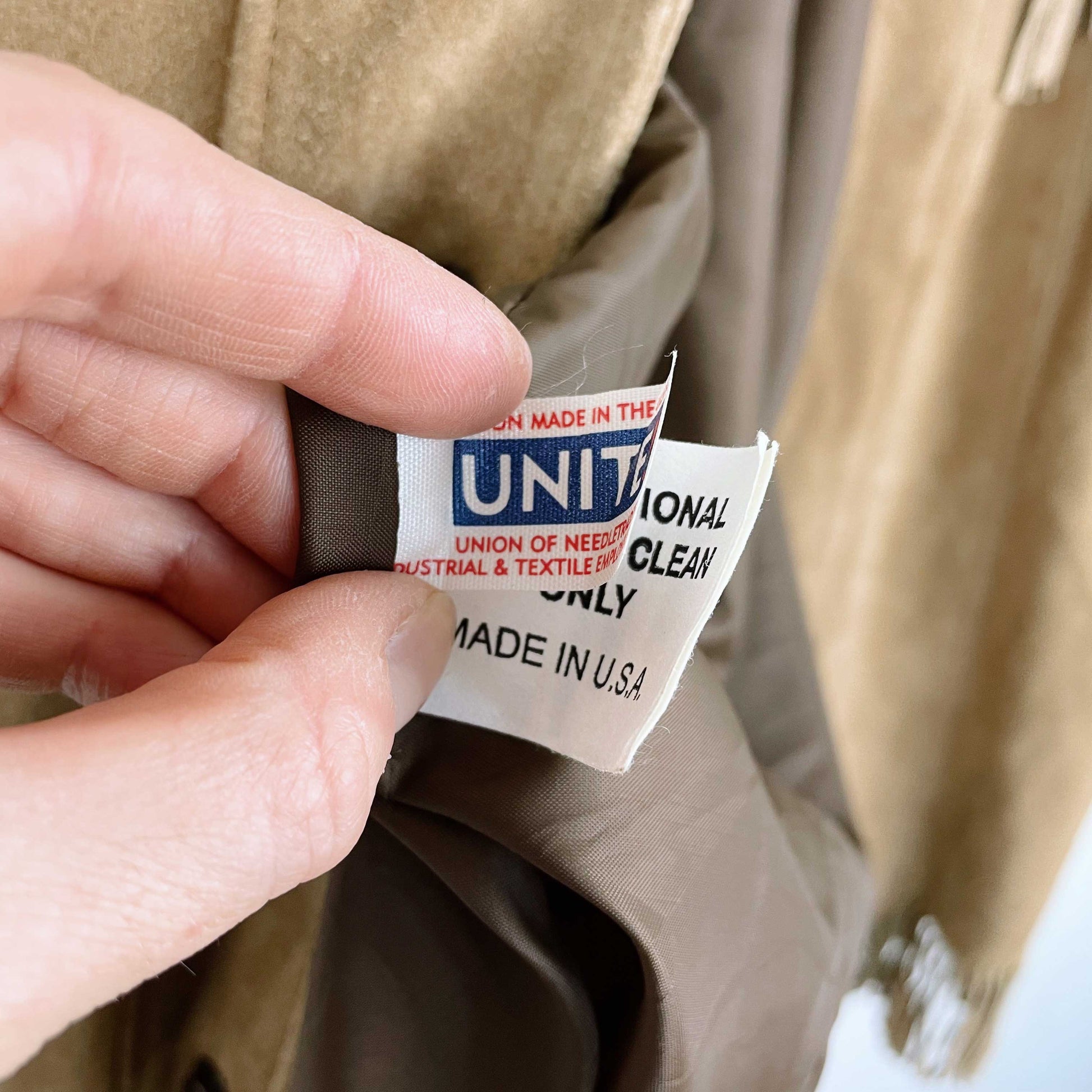 Item description: This jacket though. *phewf* Union made in the USA, this heavy suede rancher jacket has all the yes you could ask for from this rodeo collection. Like it deserves to be on the cover of a Harlequin novel, am I right? It's what dreams are made of. 100% leather