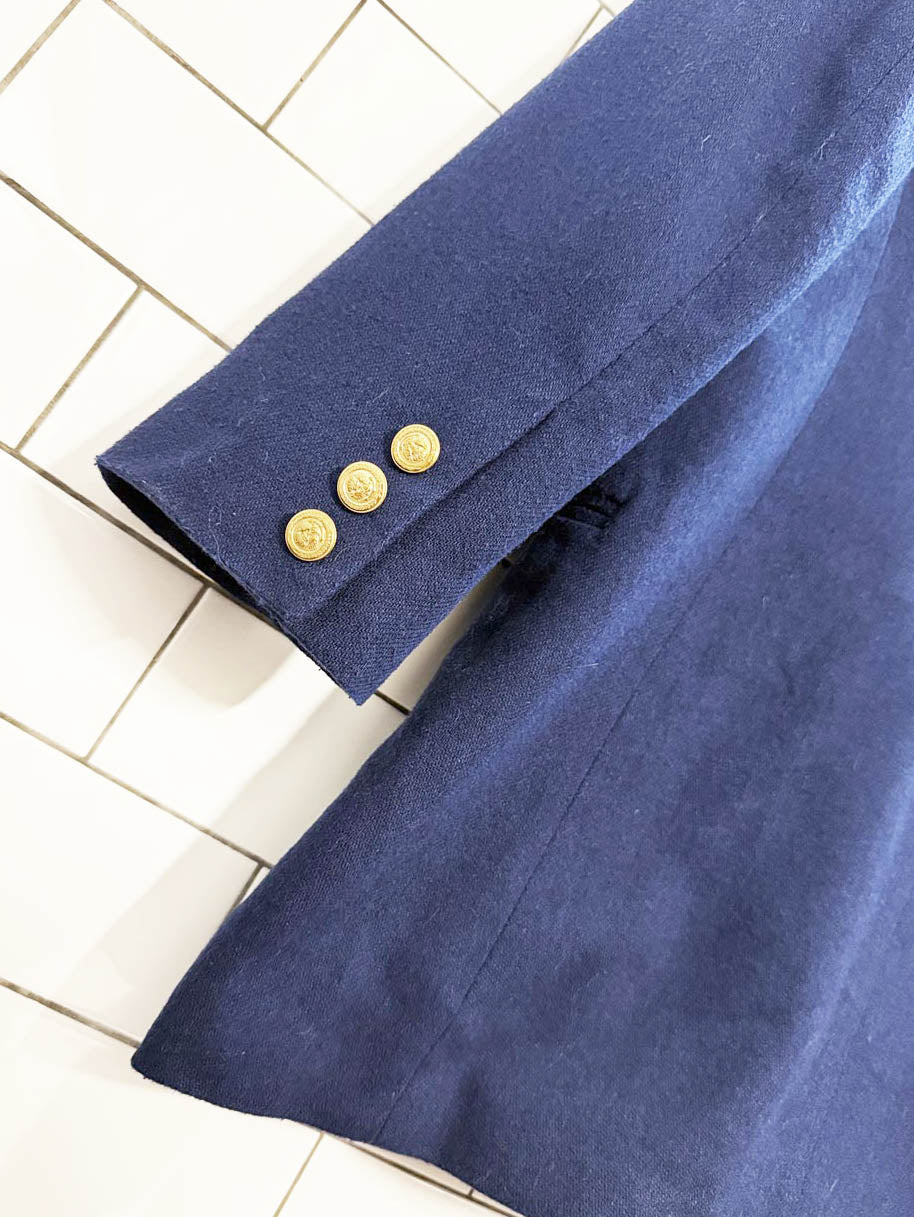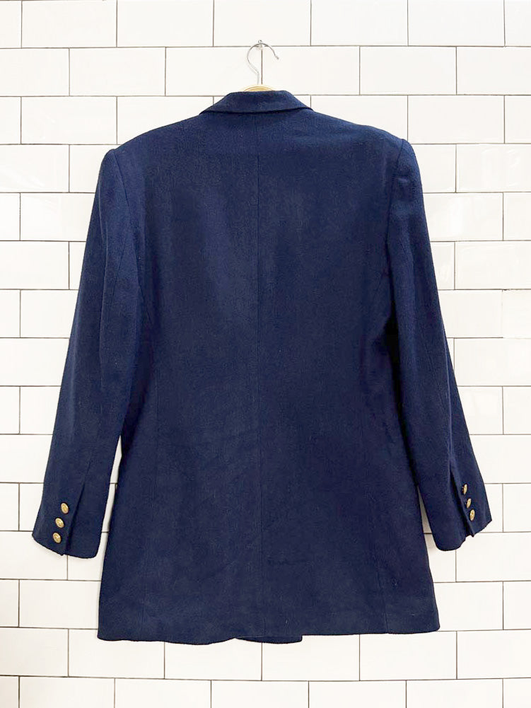 vintage express wool-blend beaded crest pocket double breasted blazer | made in USA