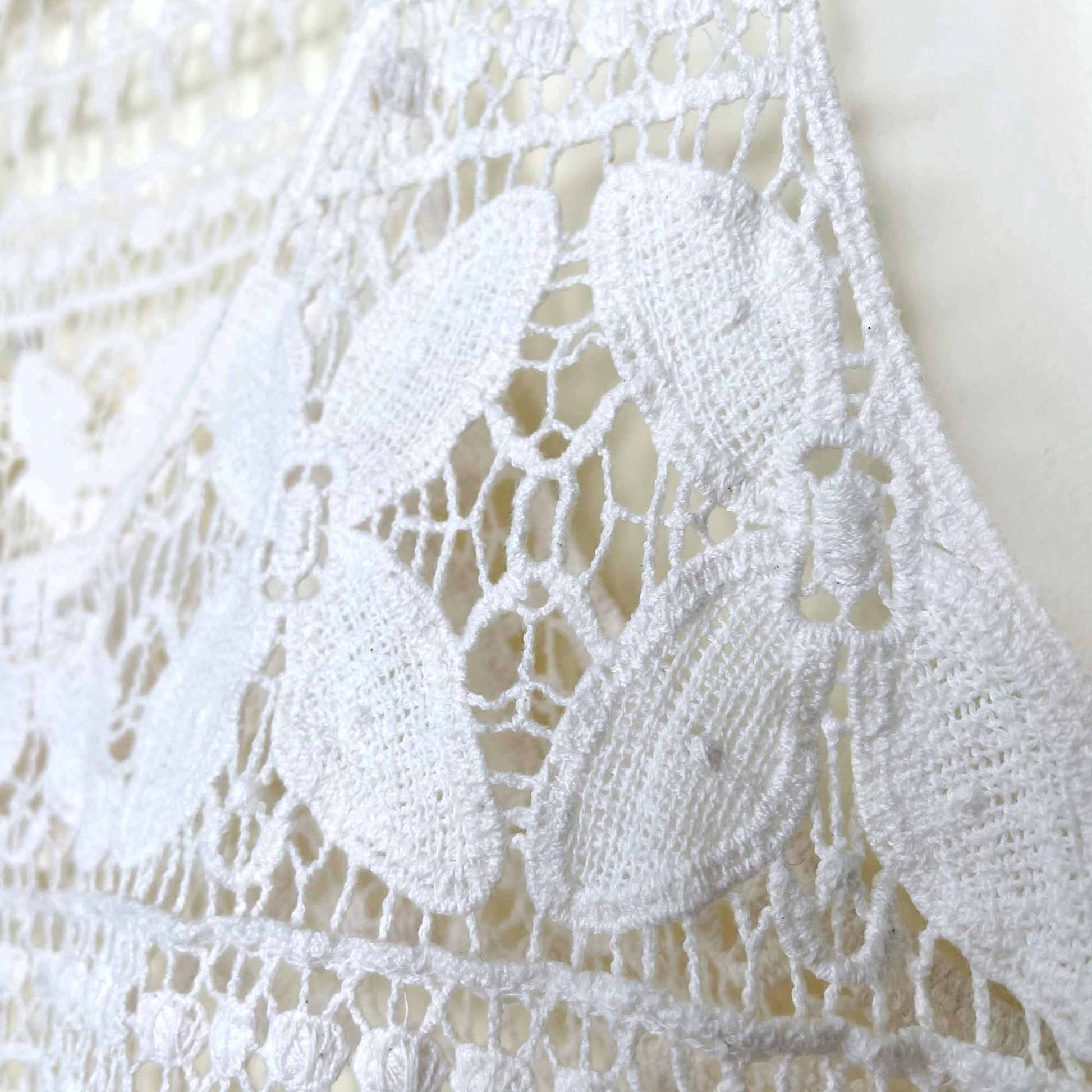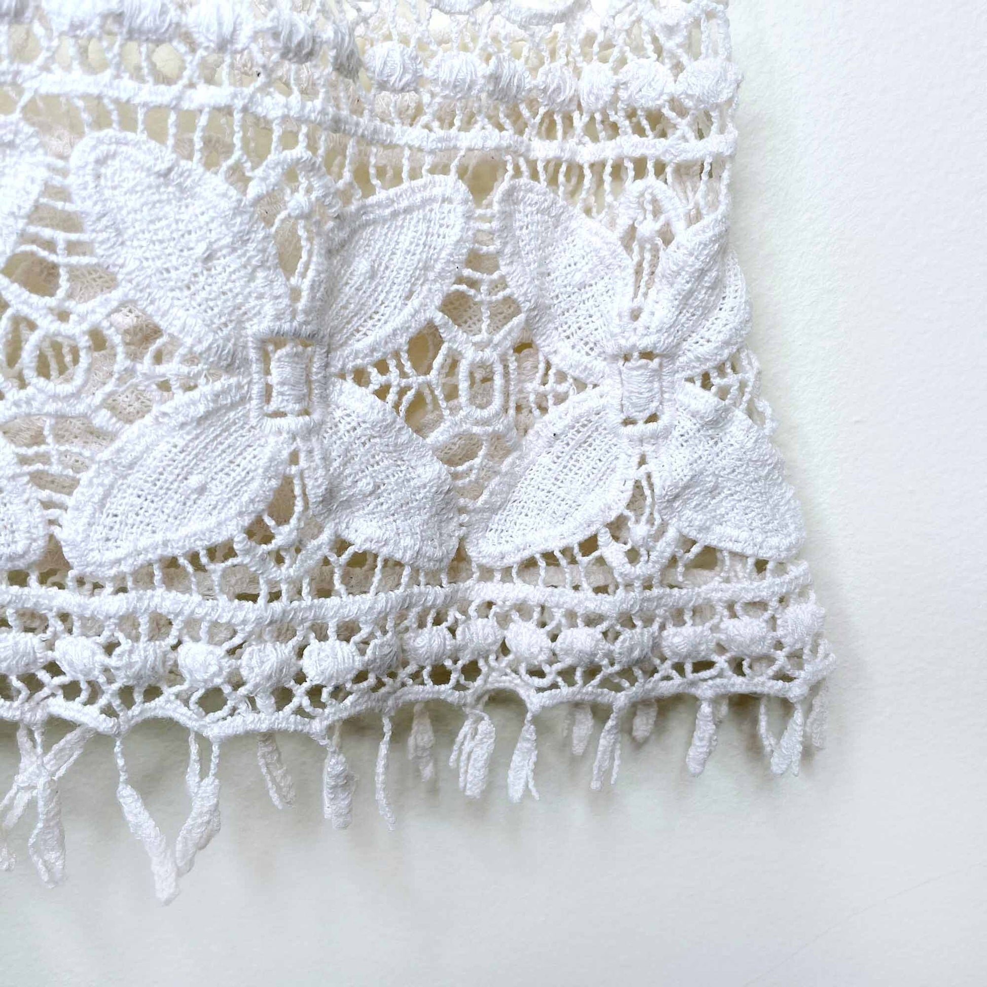 Vintage flower crochet tank top with fringe hem - size xs/s