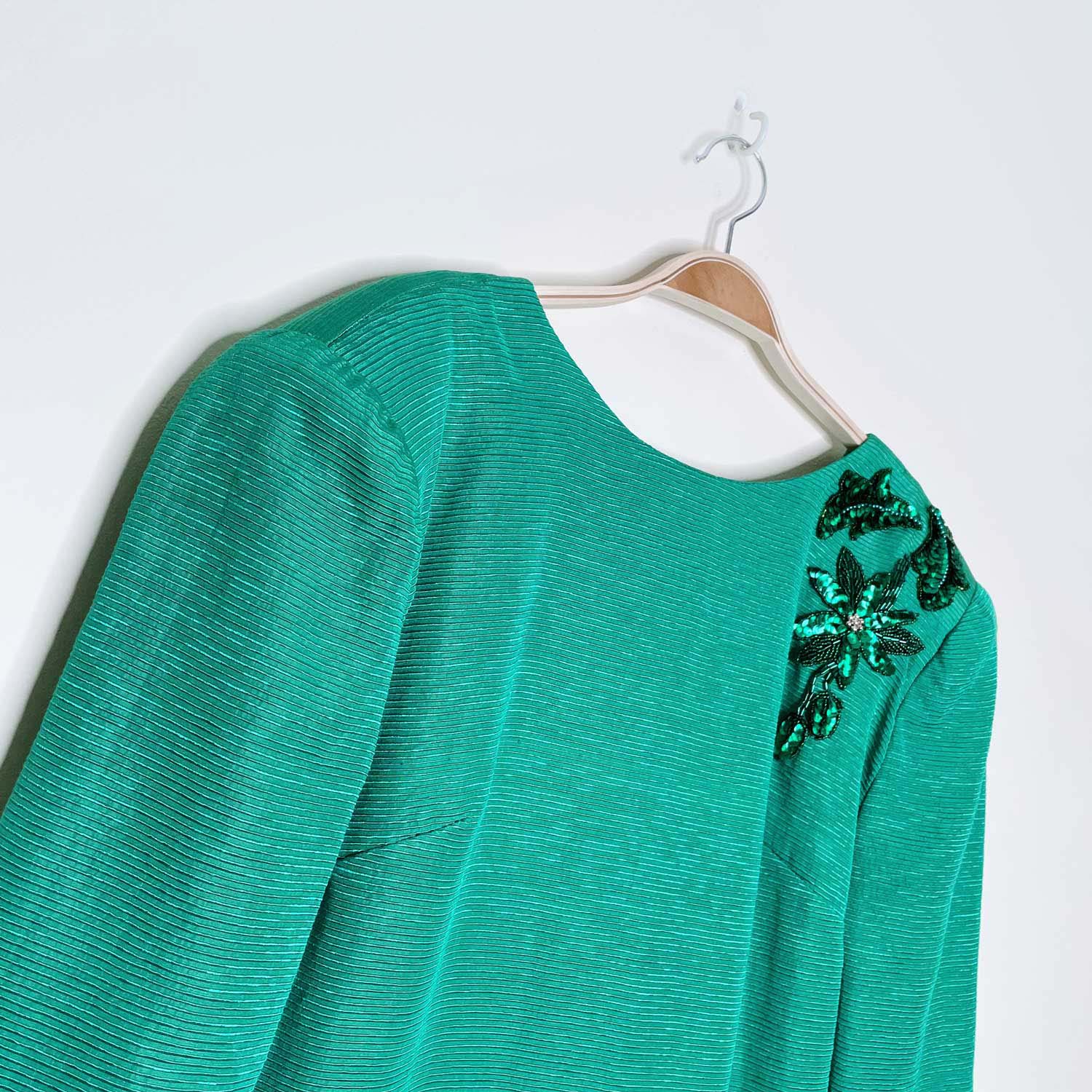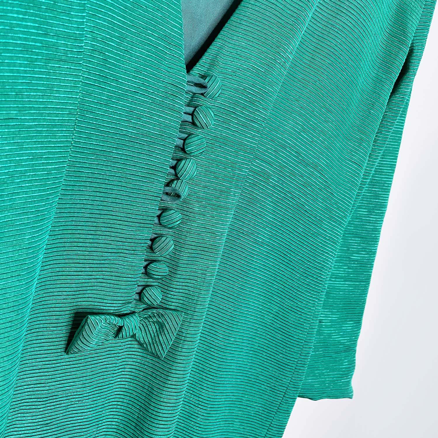 Content: no content tag but fabric has a satin ribbed texture which makes me think it's polyester. shoulders have built in shoulder pads