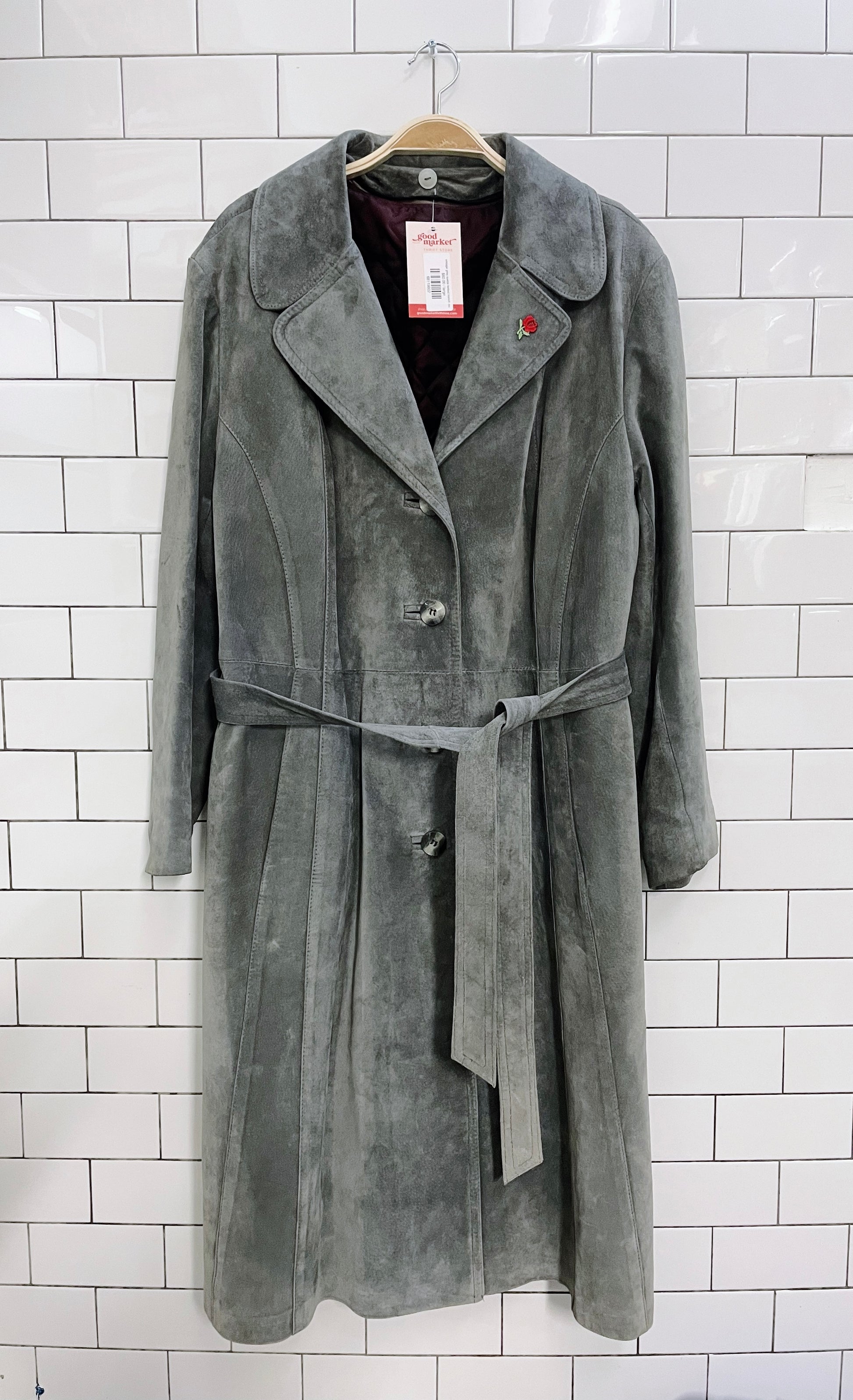 vintage grey suede belted trench coat
