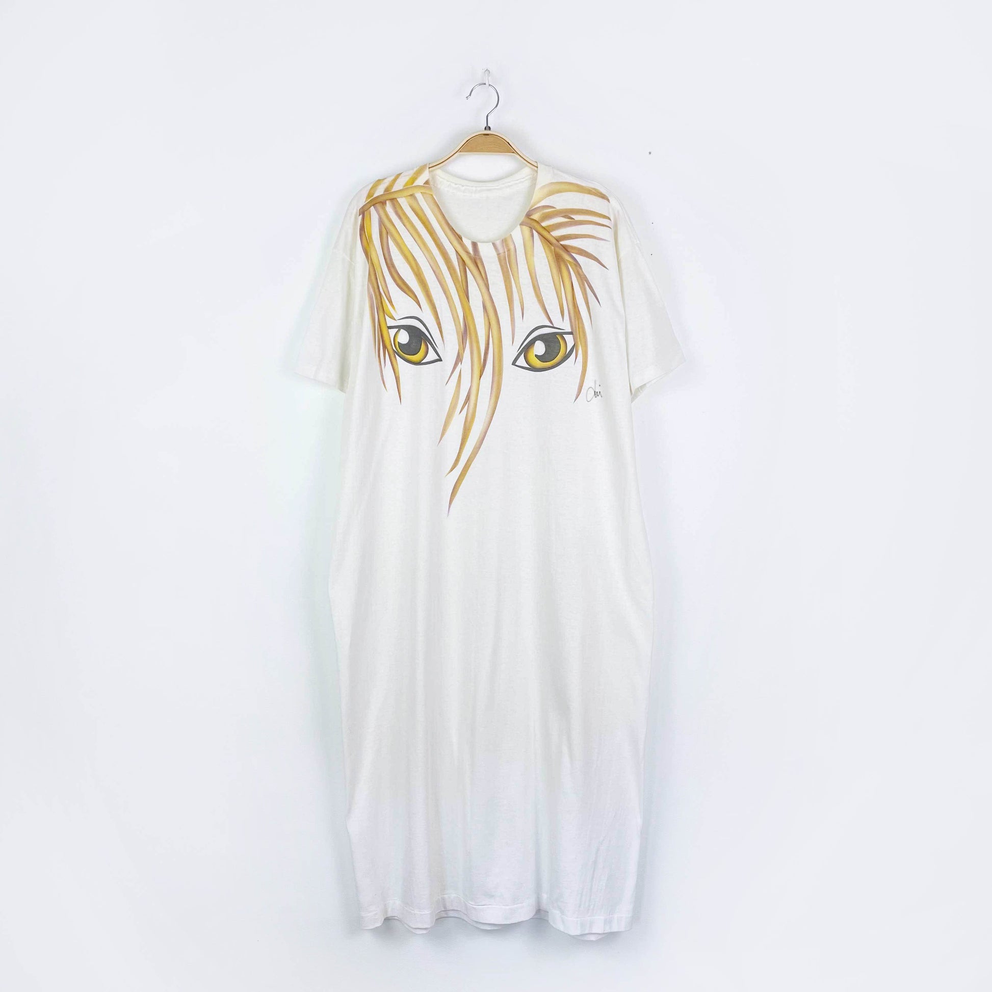 vintage hand-painted hiding eyes t-shirt midi dress