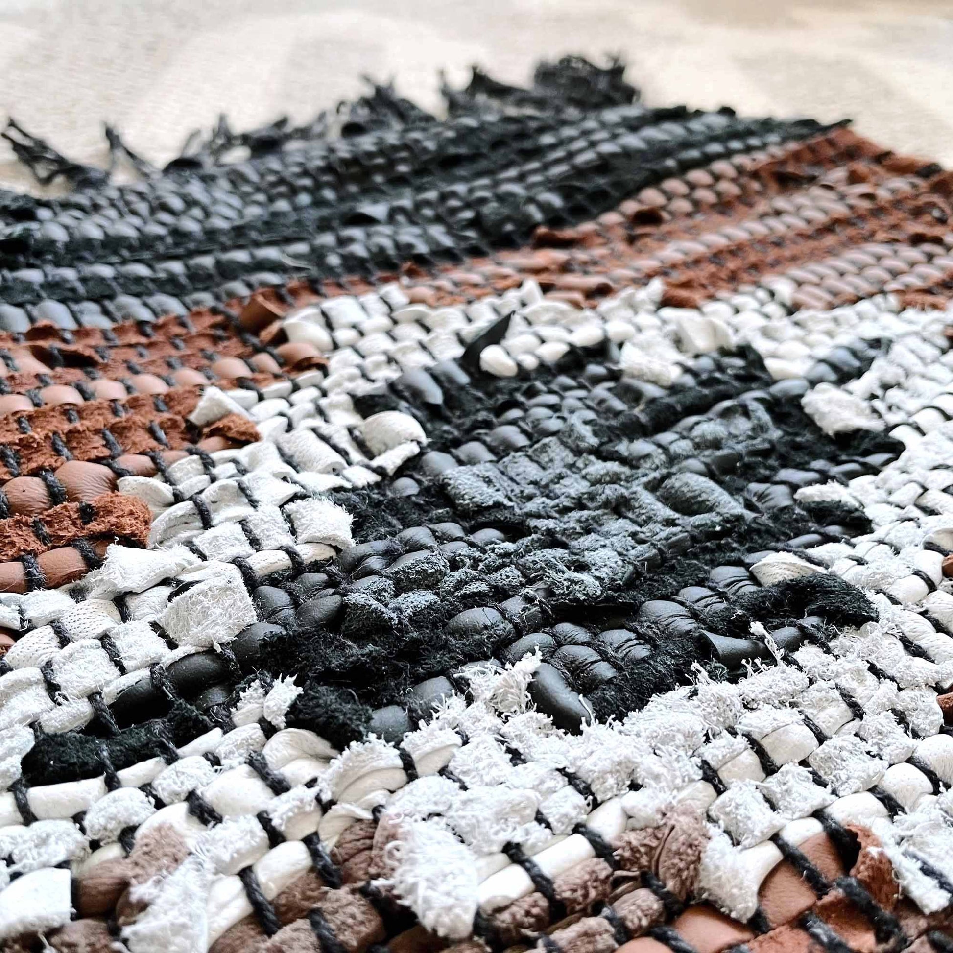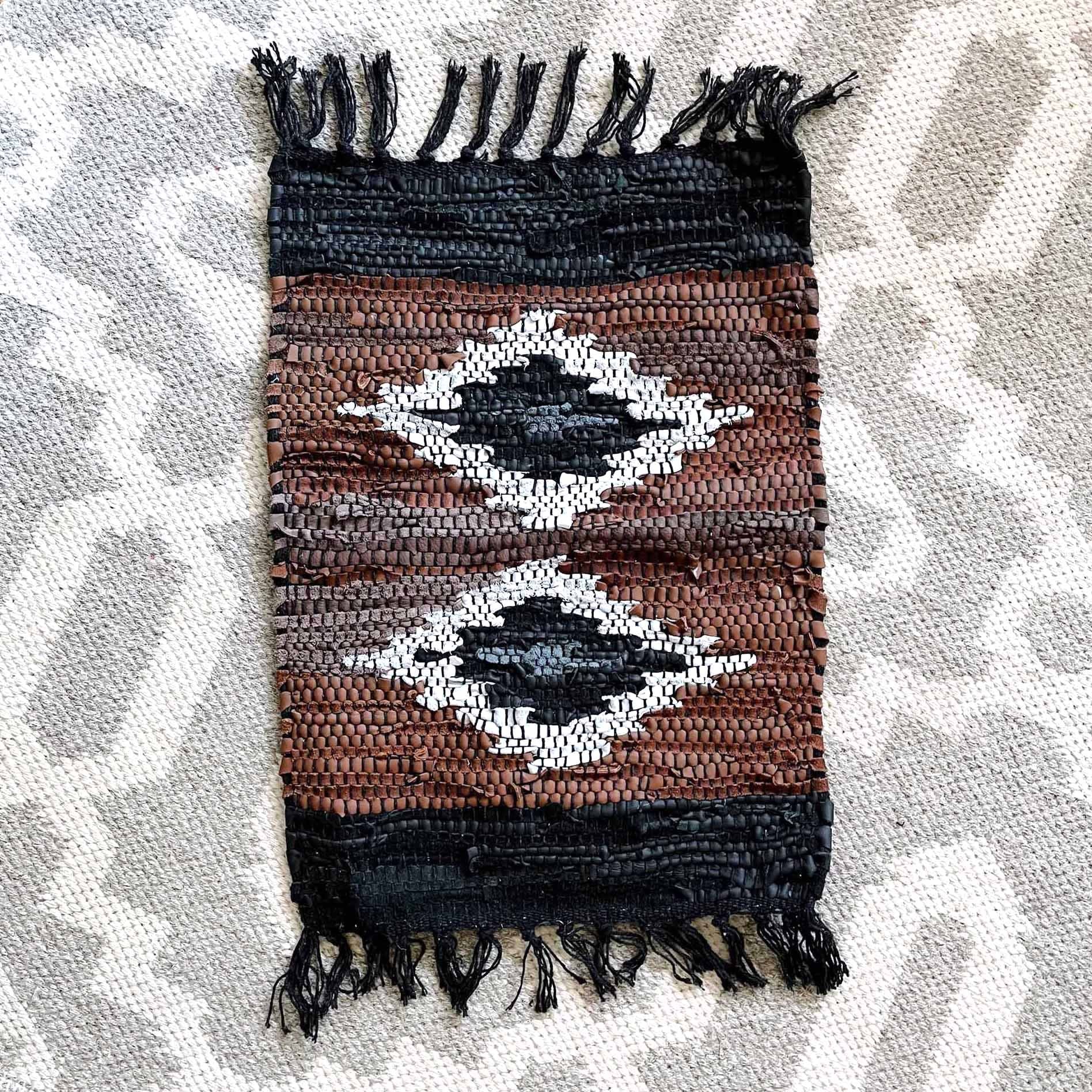 vintage hand woven boho moroccan leather rug