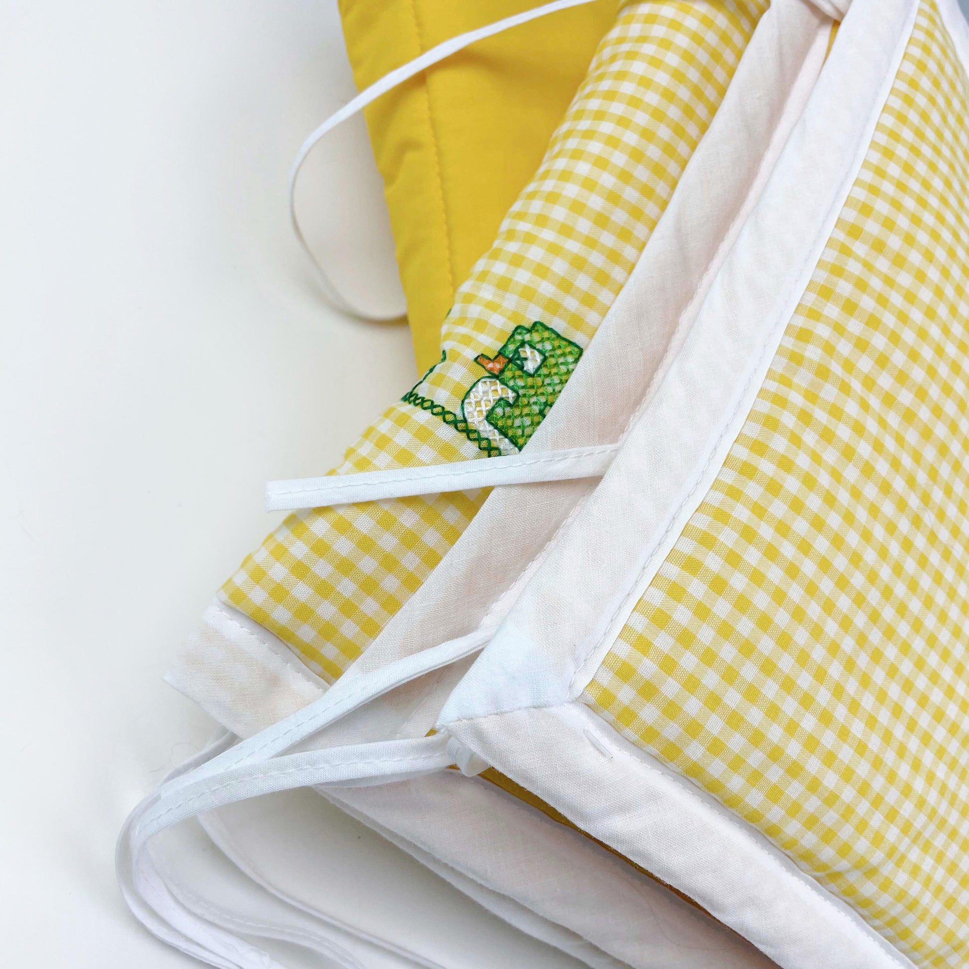 vintage handmade cross stitch ducks gingham baby crib bumper