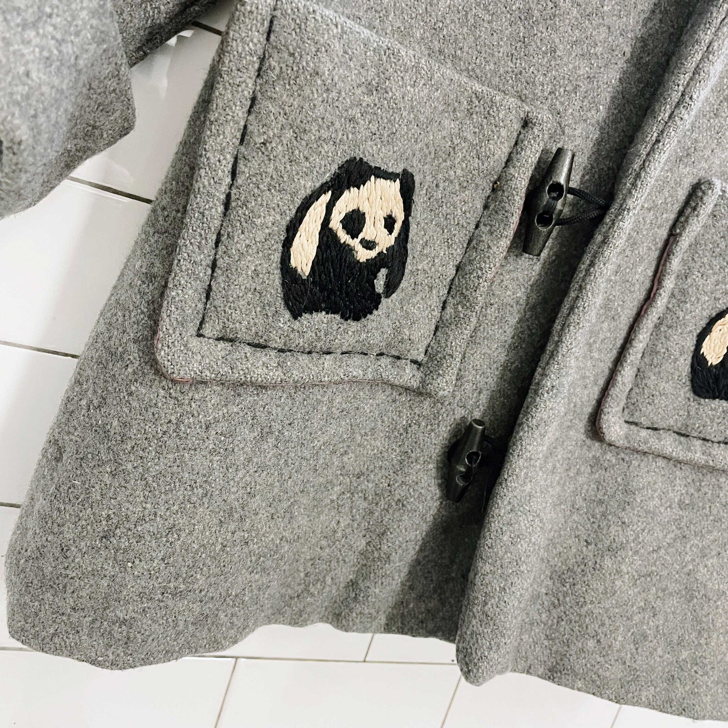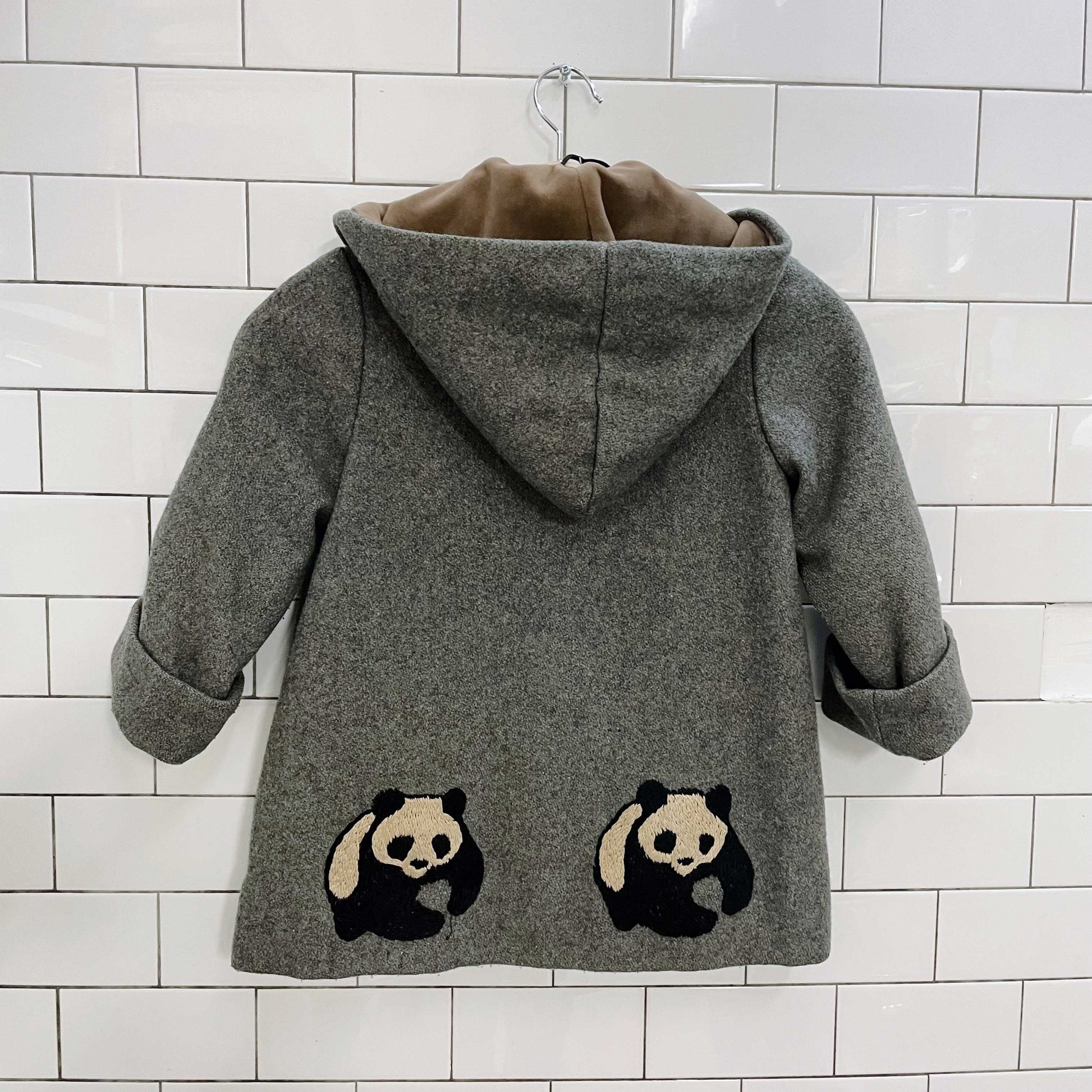 vintage handmade panda bear wool toggle coat - size 5
