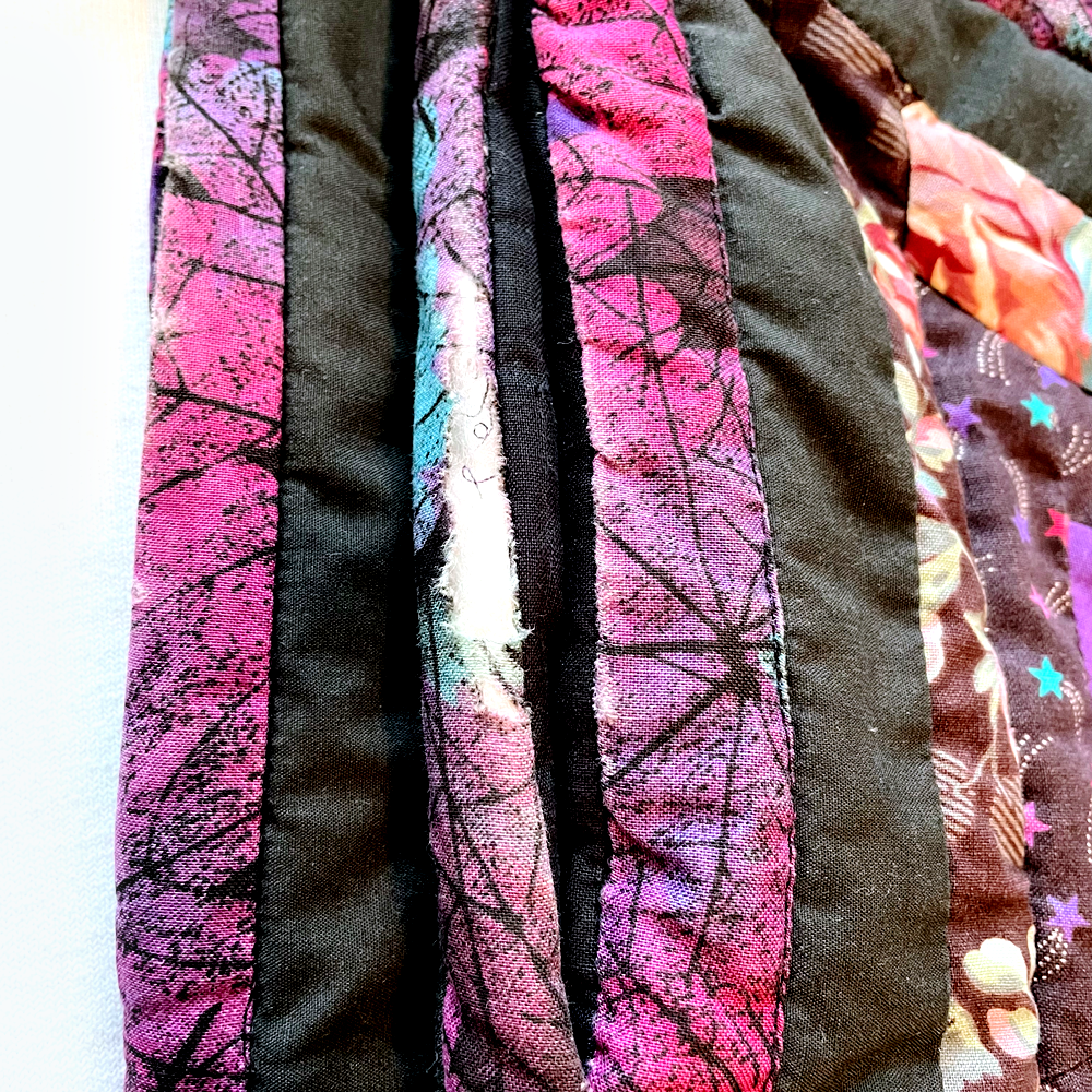 Item Description: Quilt jackets are all the rage, and this purple hued short number has a boxy fit with a lovely contrast pattern, ruched elastic cuffs and standing collar.