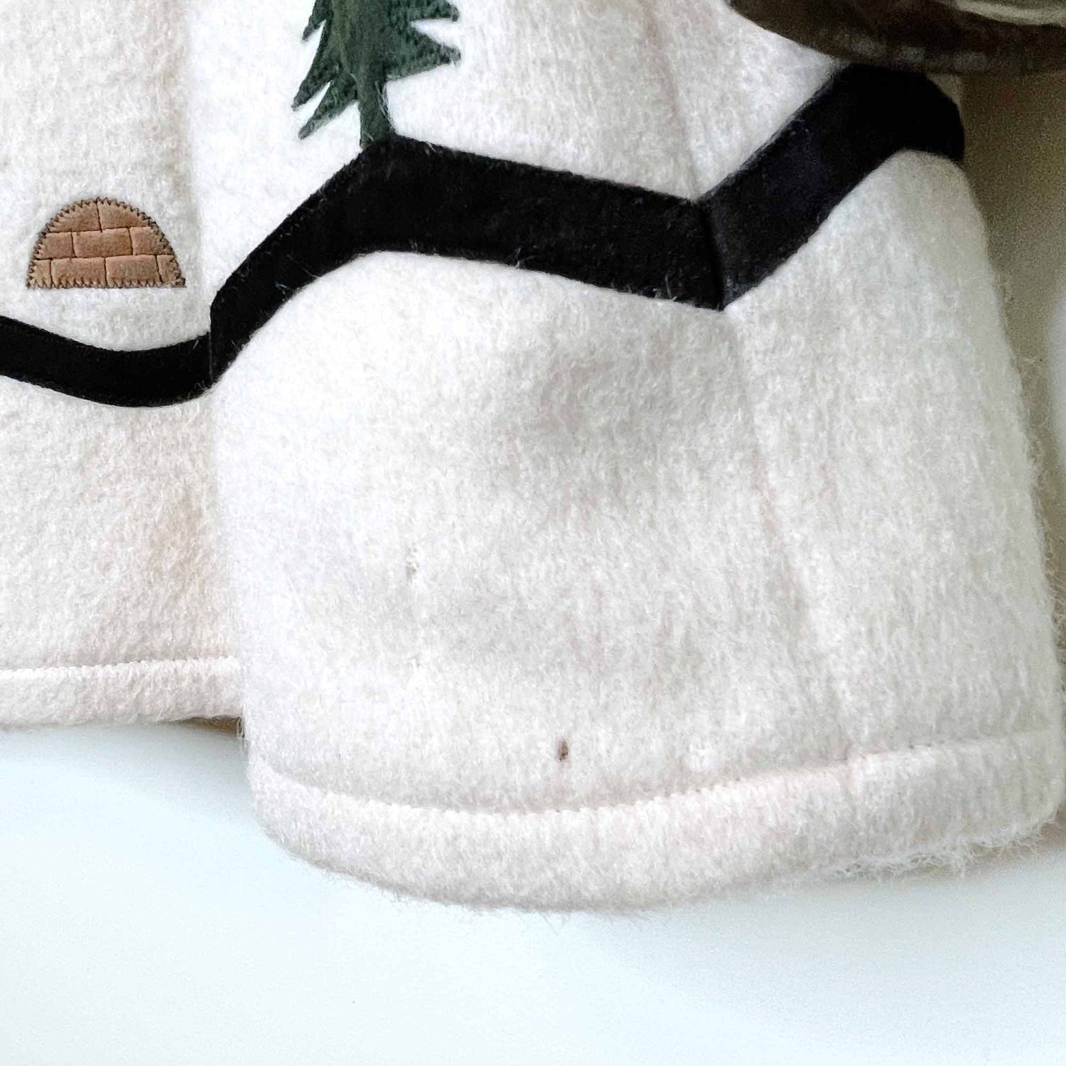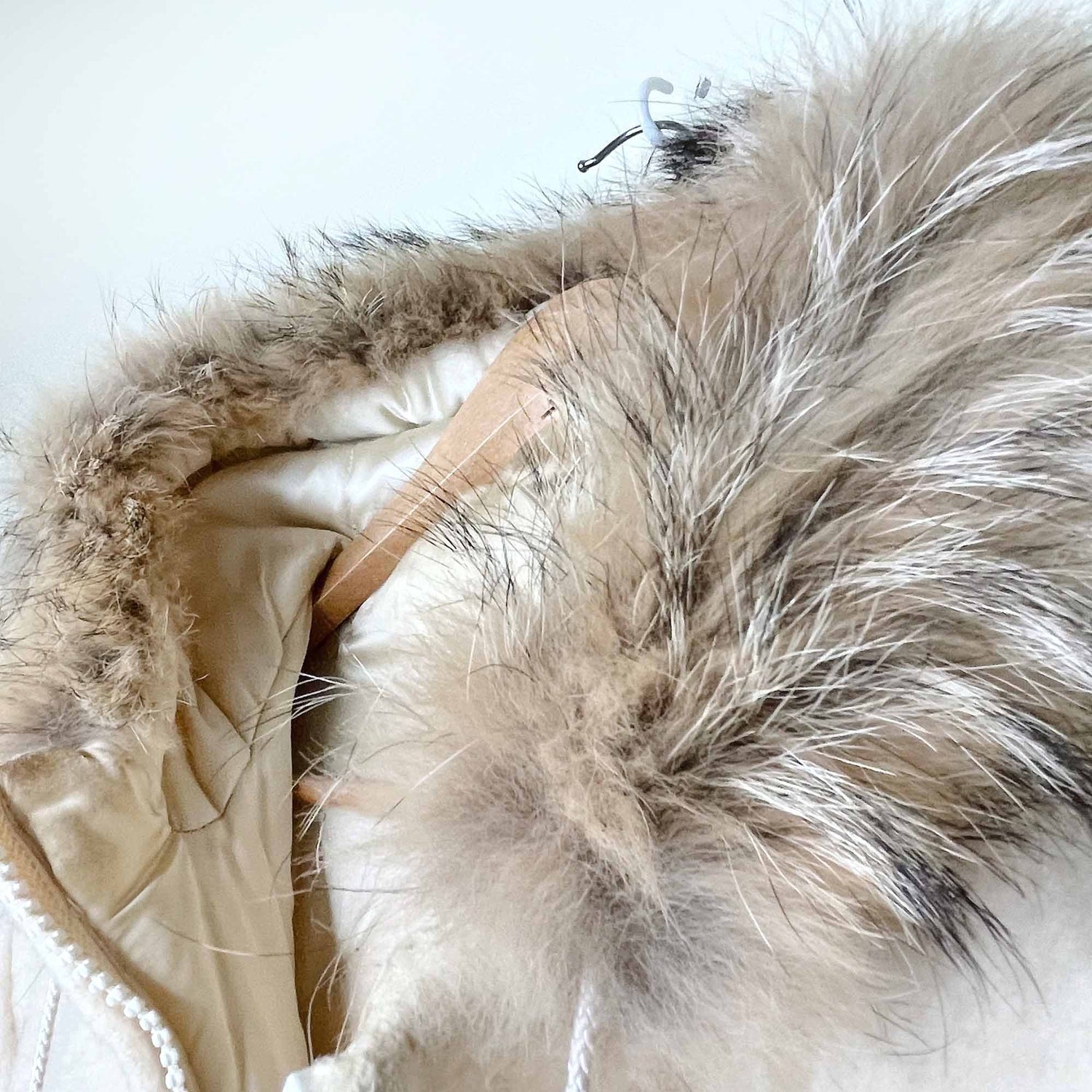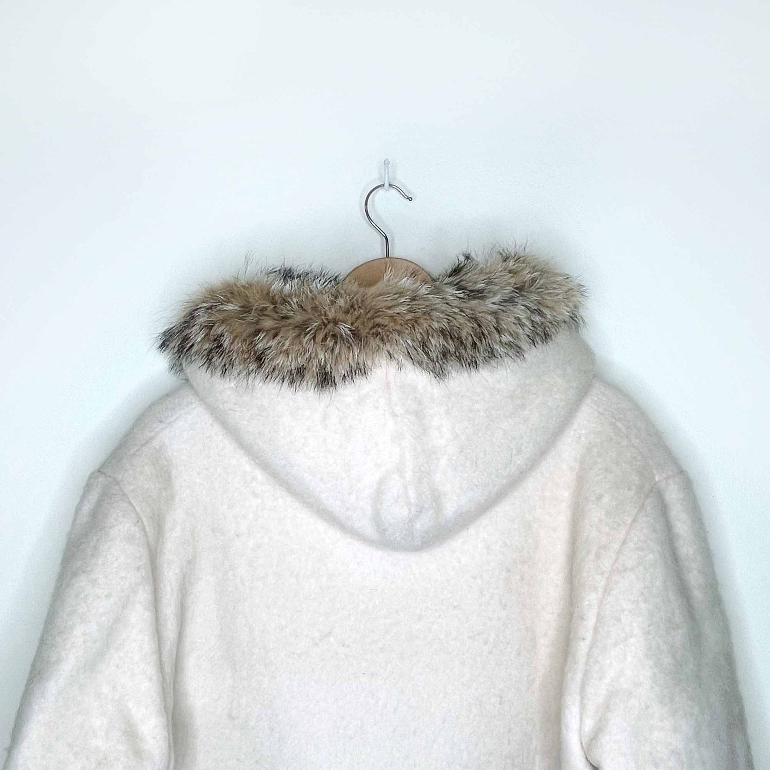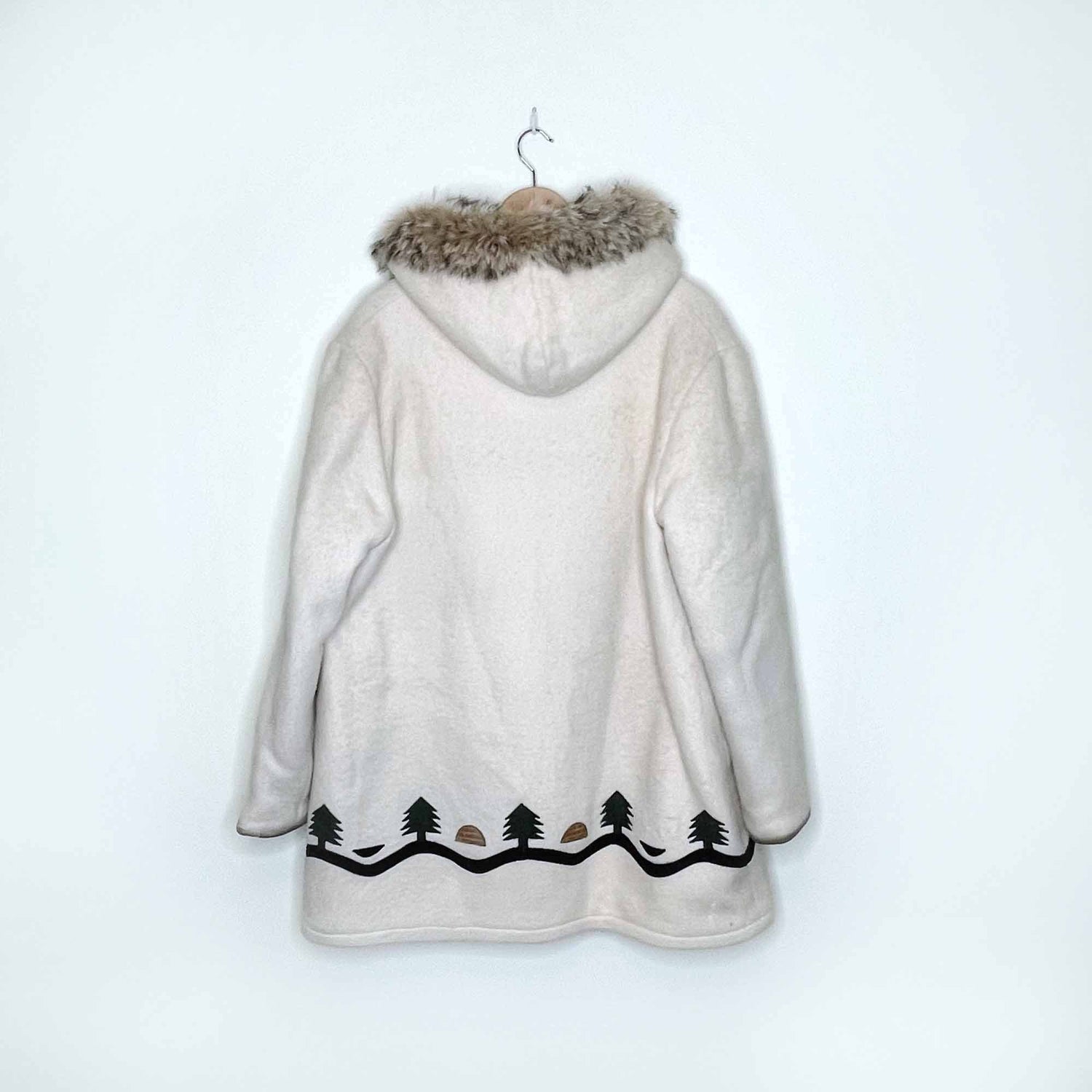 vintage hudson's bay company natural wool leather igloo scene parka with fox fur hood - size 16