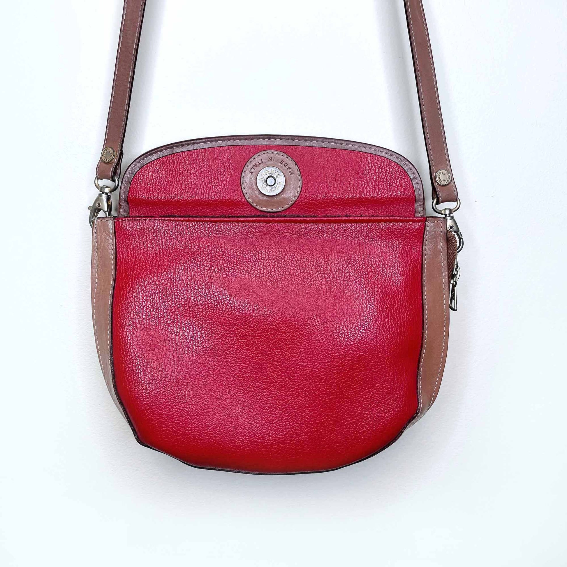 Item Description: 100% leather - this bag reverses through the zipper, so it’s not red on one side and blue on the other, it’s always one solid colour.