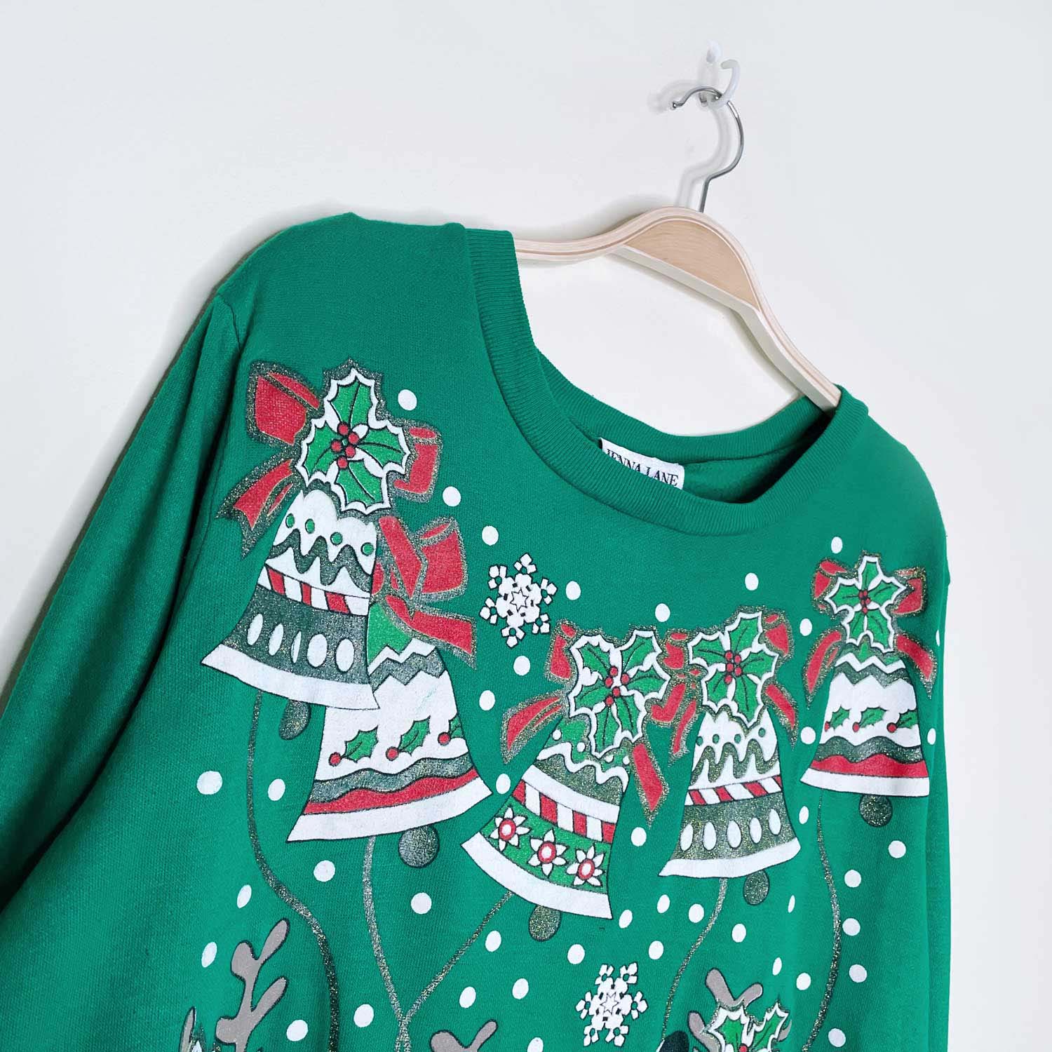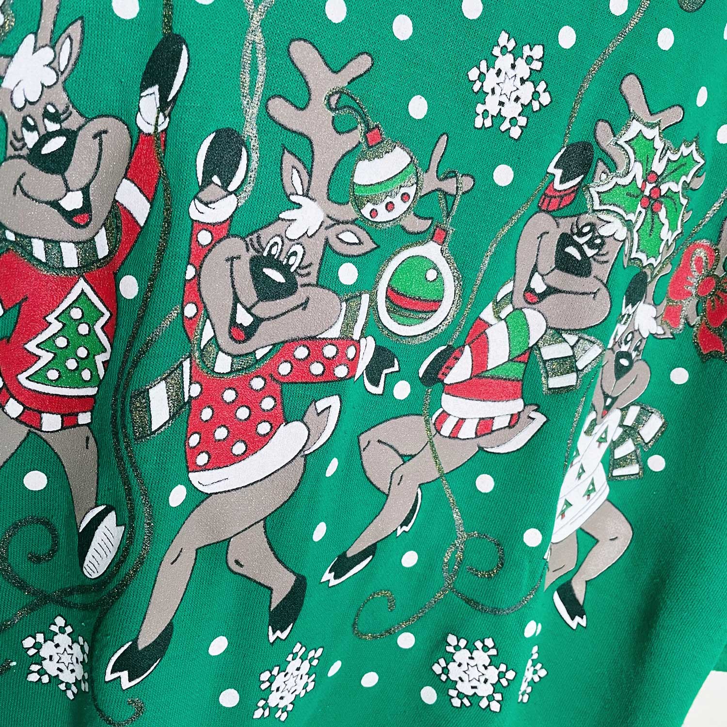 vintage jenna lane ny dancing reindeer graphic holiday crew - size medium