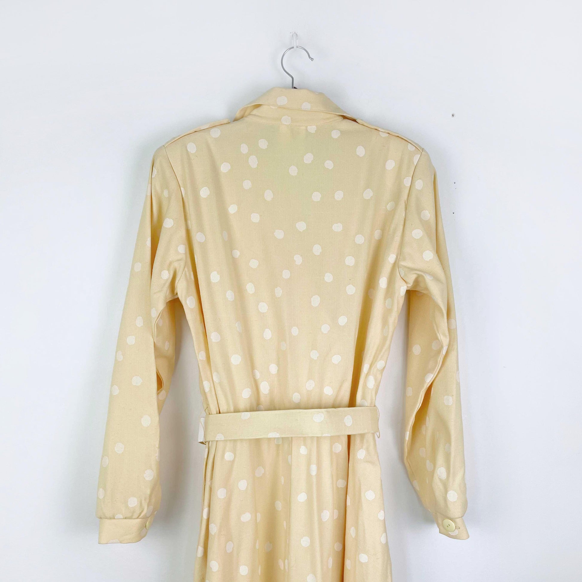 vintage jessica yellow polka dot long sleeve belted midi dress