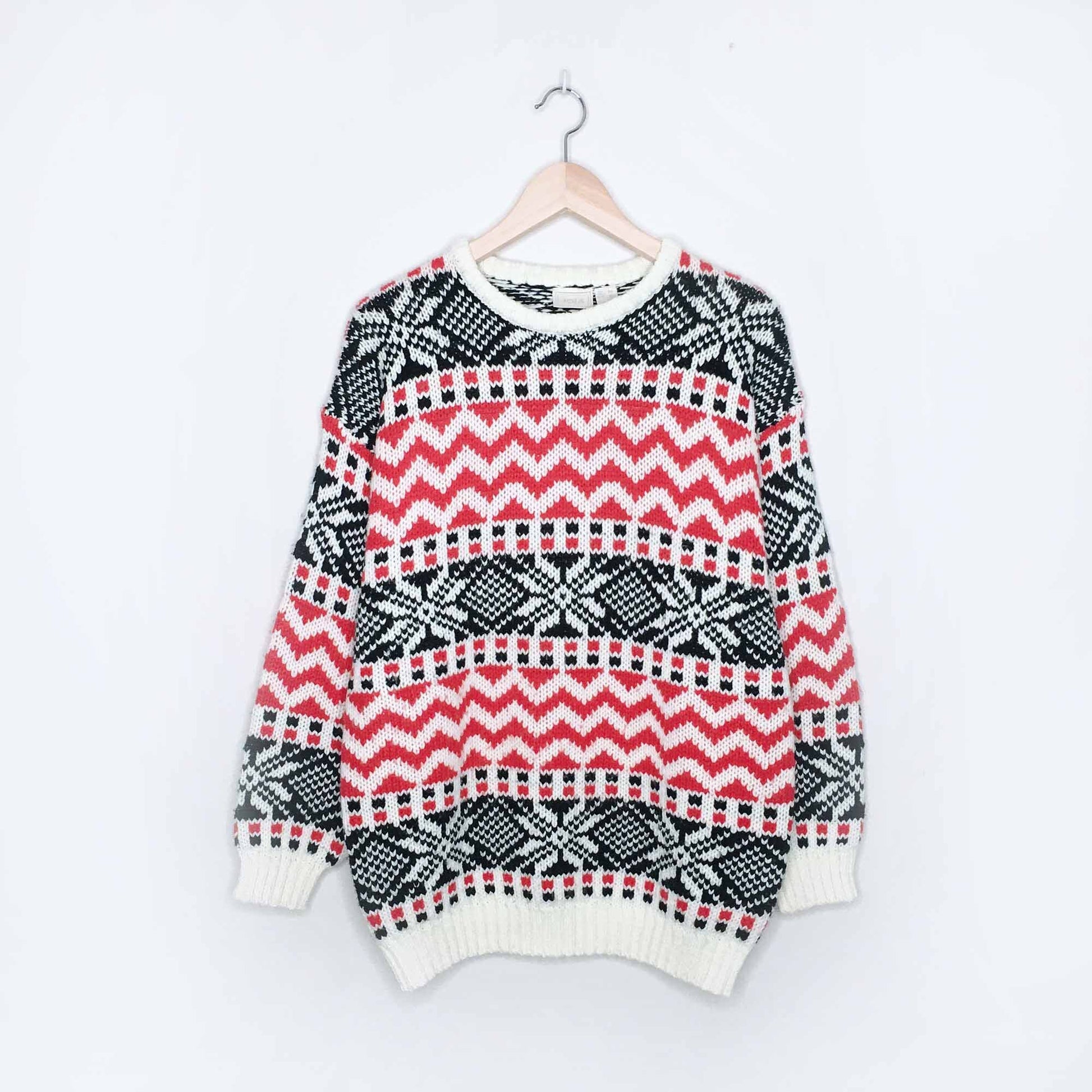 Item Description: This ultra fun christmas sweater from JOIA features a snowflake knit with a bit of zig zag fun thrown in. 100% acrylic